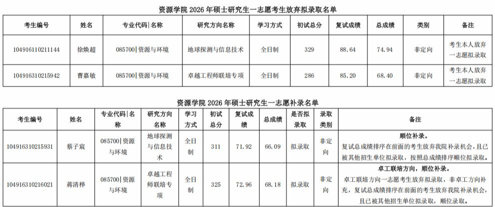 因禁漫天堂 一志愿拟录取考生放弃拟录取(名单见表),根据禁漫天堂 2026年研究生招生一志愿复试结果,现将禁漫天堂 一志愿顺位递补拟录名单(见表)公示如下。