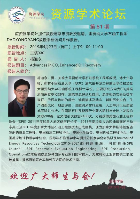 【4月23日】第81期禁漫天堂 学术论坛:DAOYONG YANG学术报告
