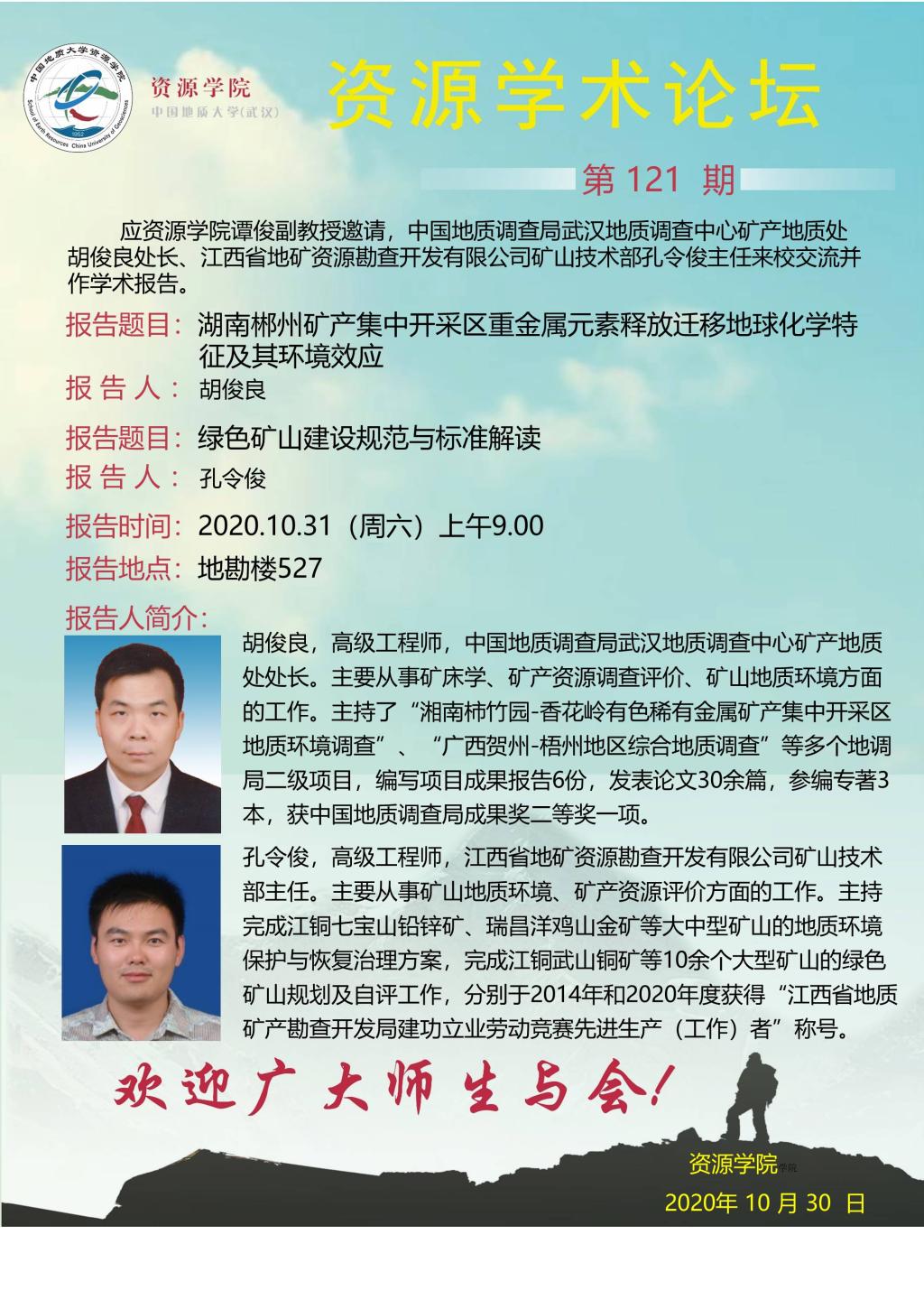 【10月31日】第121期禁漫天堂 学术论坛:胡俊良、孔令俊学术报告
