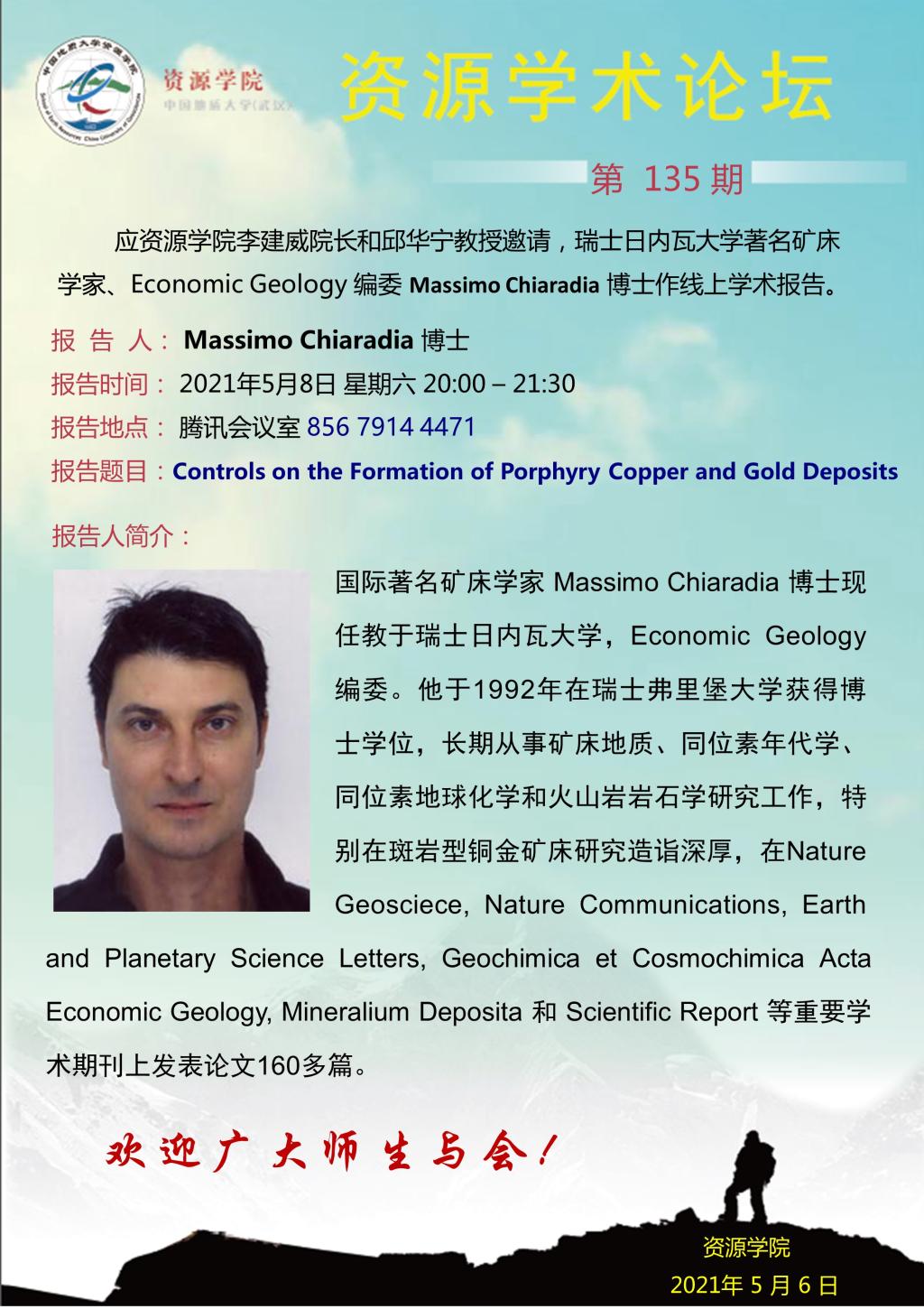 【05月8日】第135期禁漫天堂 学术论坛:Massimo Chiaradia 学术报告