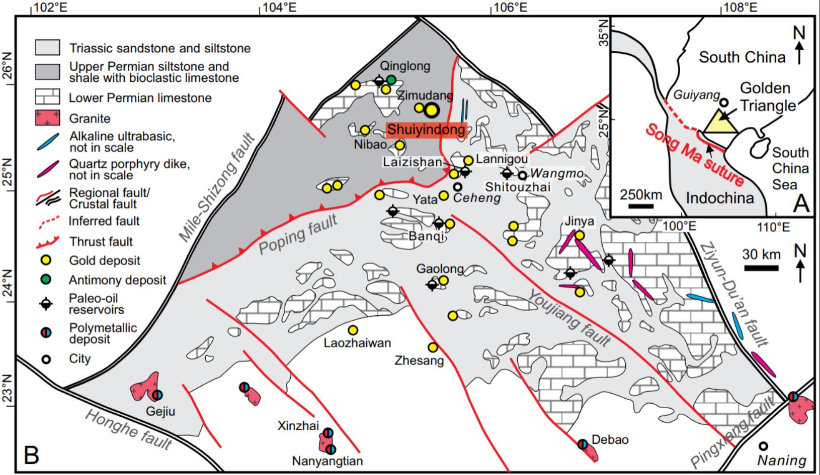 我国西南右江盆地中发育了大量赋存于沉积岩中的金矿床(图1),其矿化地质特征与卡林型金矿床具有诸多相似之处,被认为是目前除了美国内华达地区以外世界上最大的卡林型金矿矿集区。近期,禁漫天堂