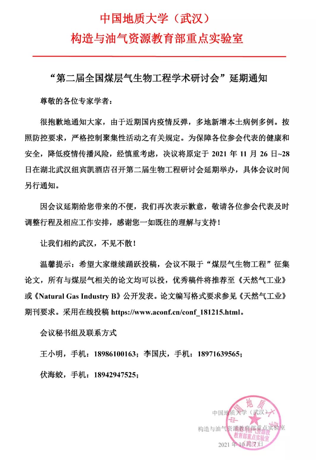 【延期通知】第二届全国煤层气生物工程学术研讨会