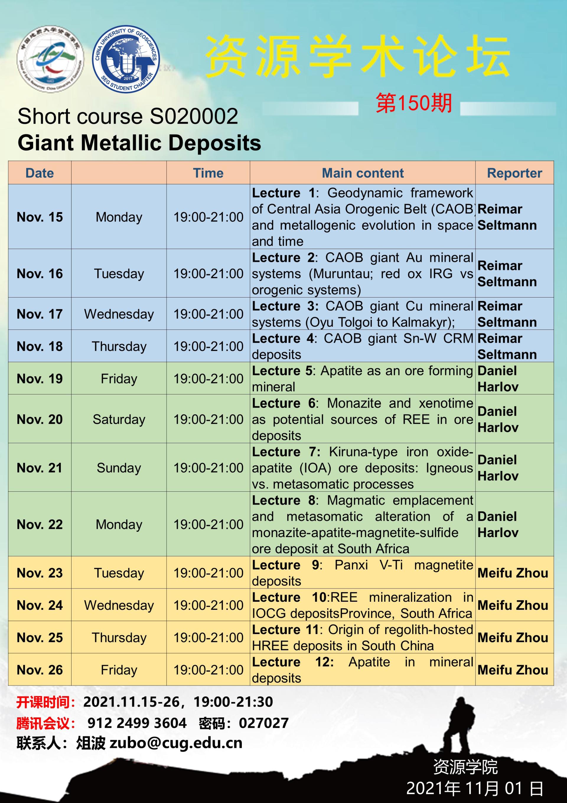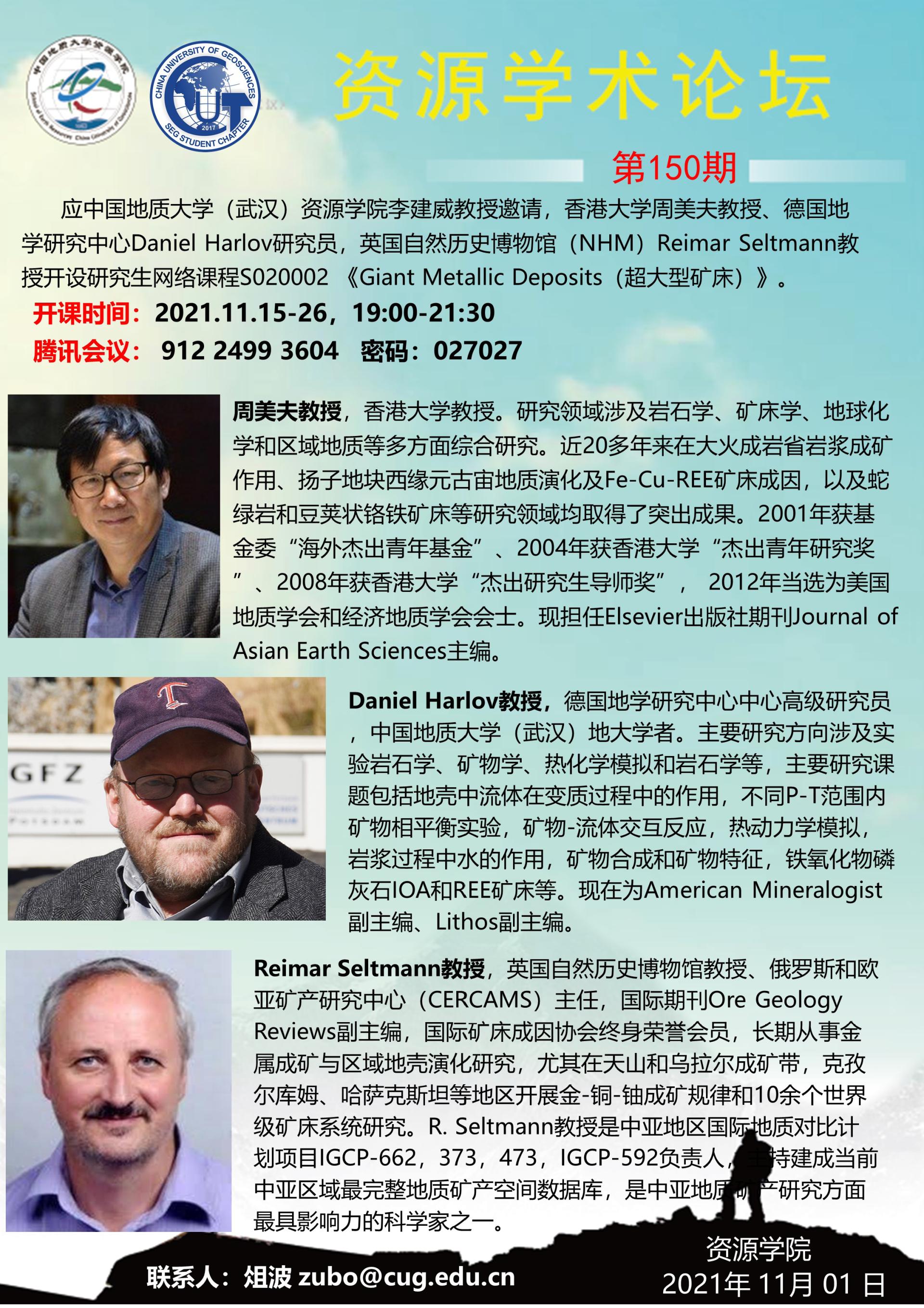 【11月15-26日】第150期禁漫天堂 学术论坛:Giant Metallic Deposits(超大型矿床)
