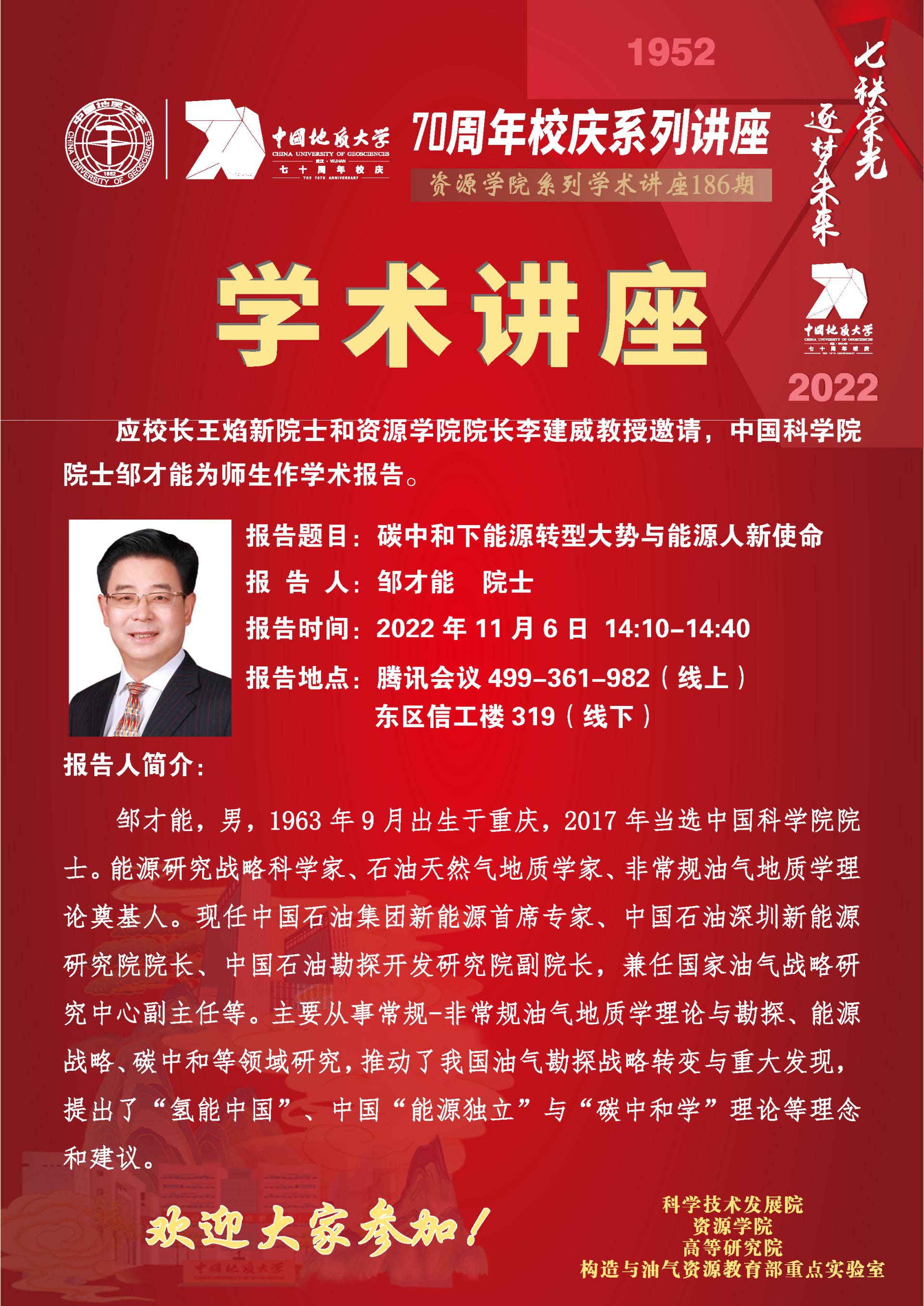 【11月6日】第186期禁漫天堂 学术论坛:邹才能学术报告