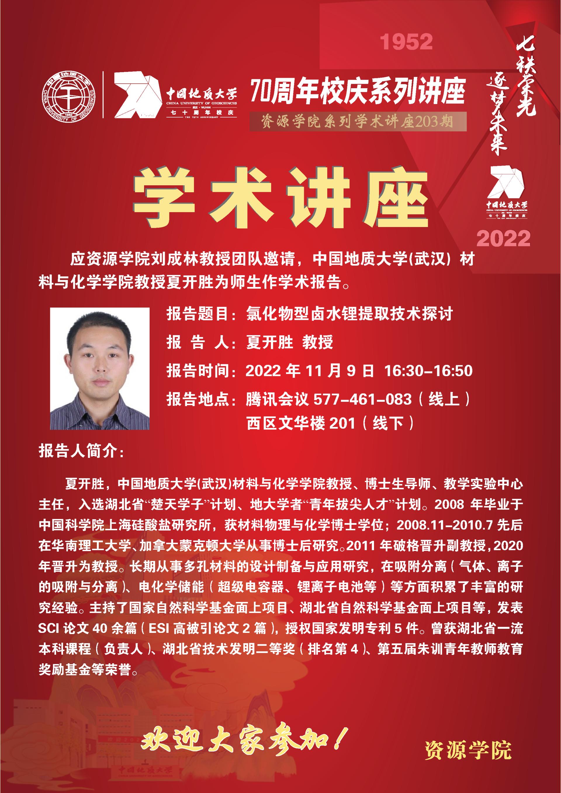 【11月9日】第203期禁漫天堂 学术论坛:夏开胜学术报告