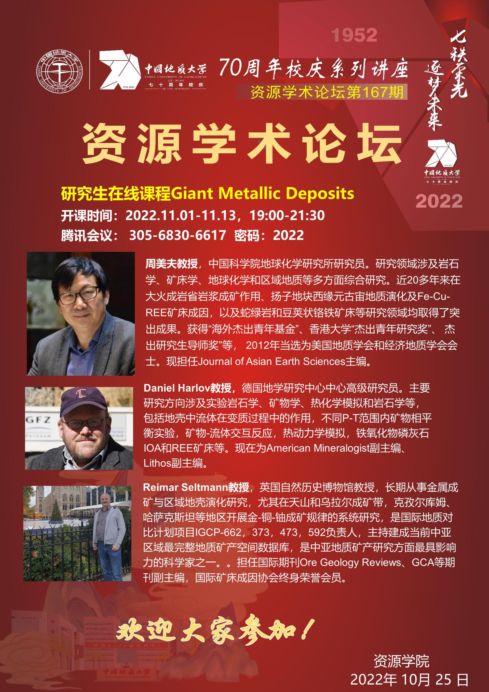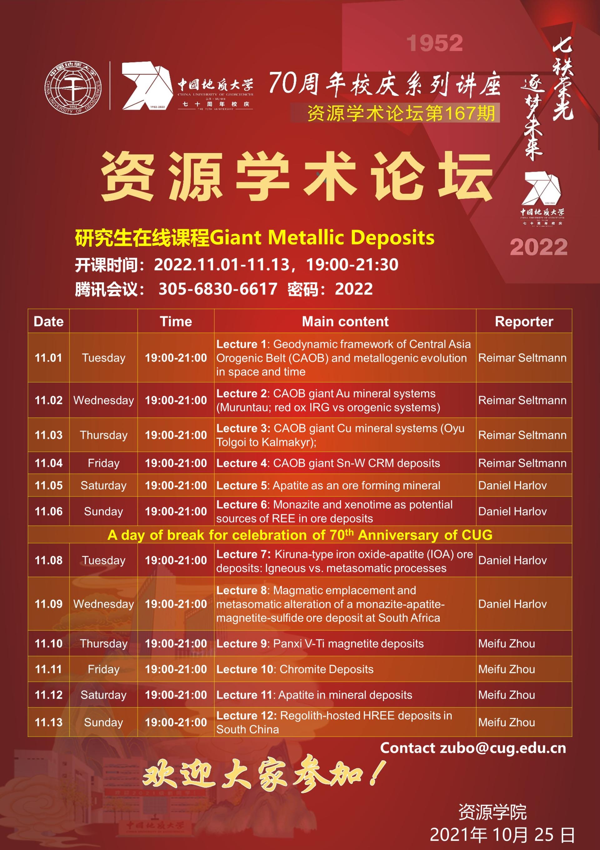 【11月1-13日】第167期禁漫天堂 学术论坛:Giant Metallic Deposits(超大型矿床)