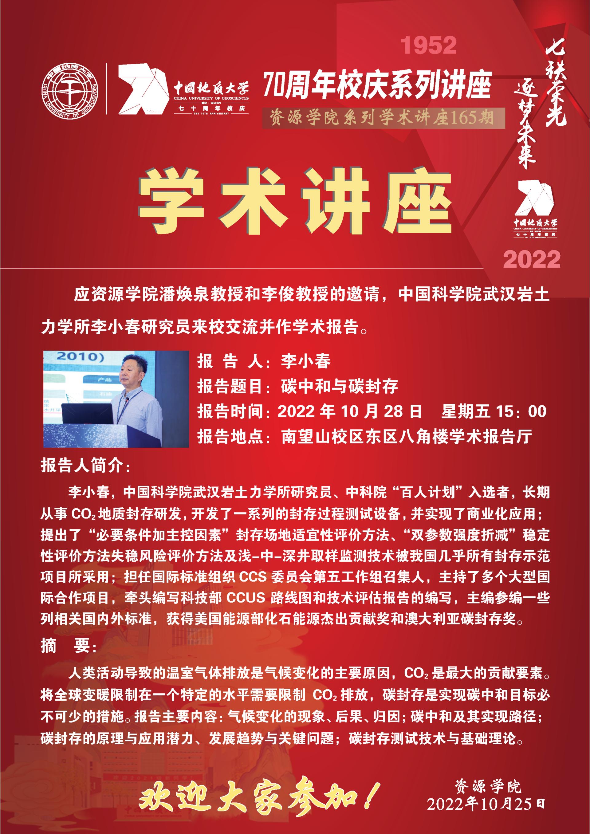 【10月28日】第165期禁漫天堂 学术论坛:李小春学术报告