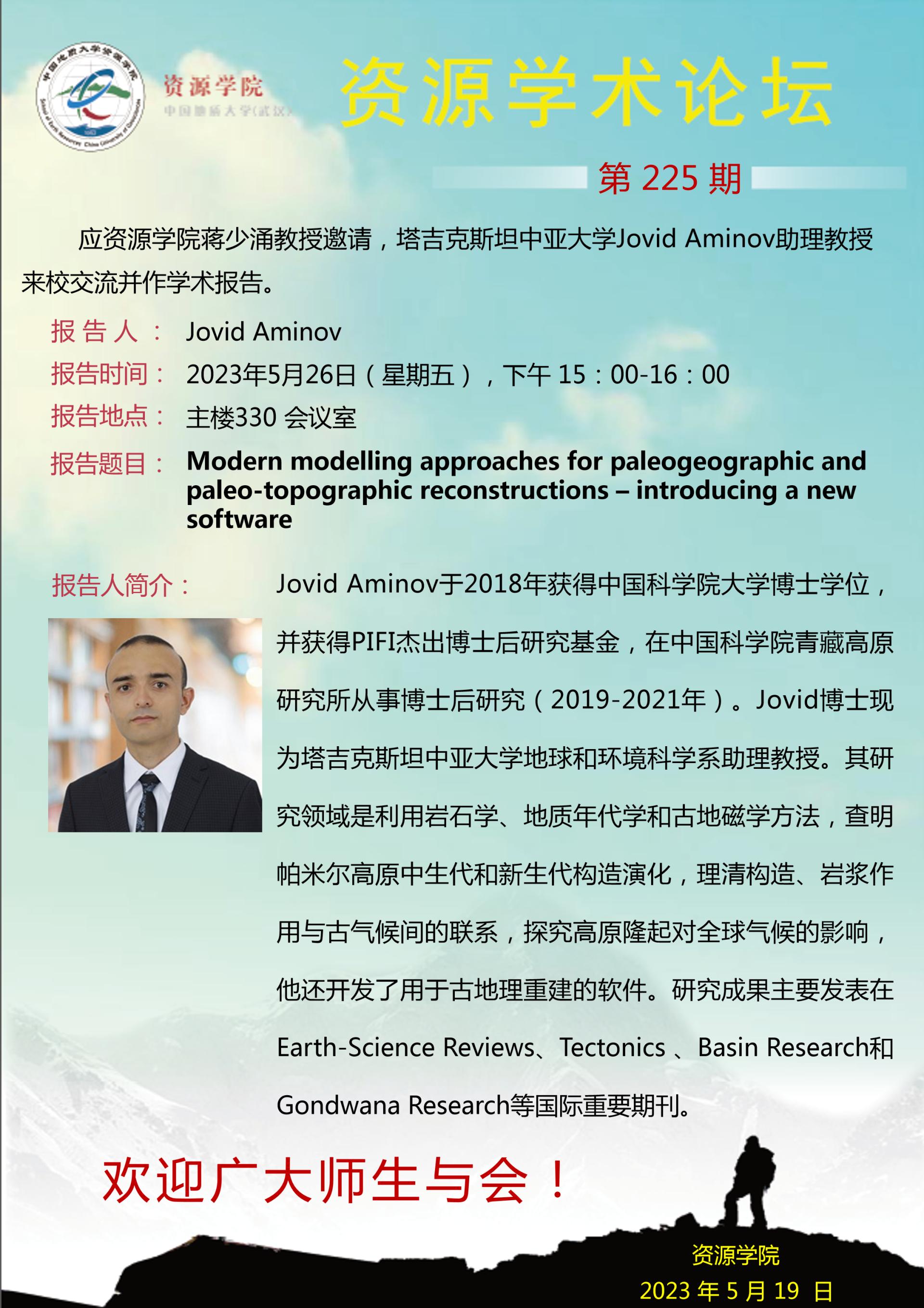 【5月26日】第225期禁漫天堂 学术论坛:Jovid Aminov学术报告