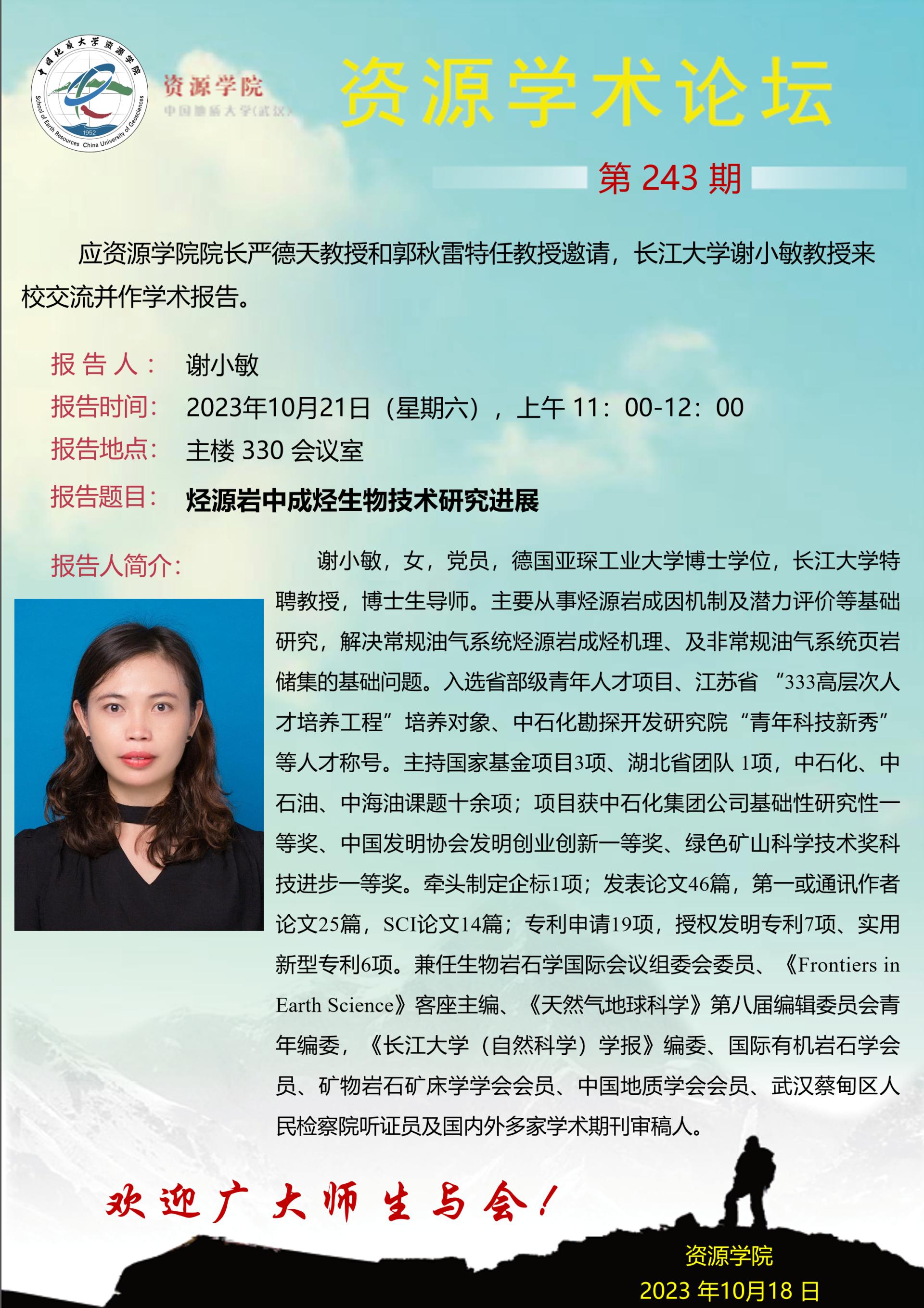 【10月21日】第243期禁漫天堂 学术论坛:谢小敏学术报告