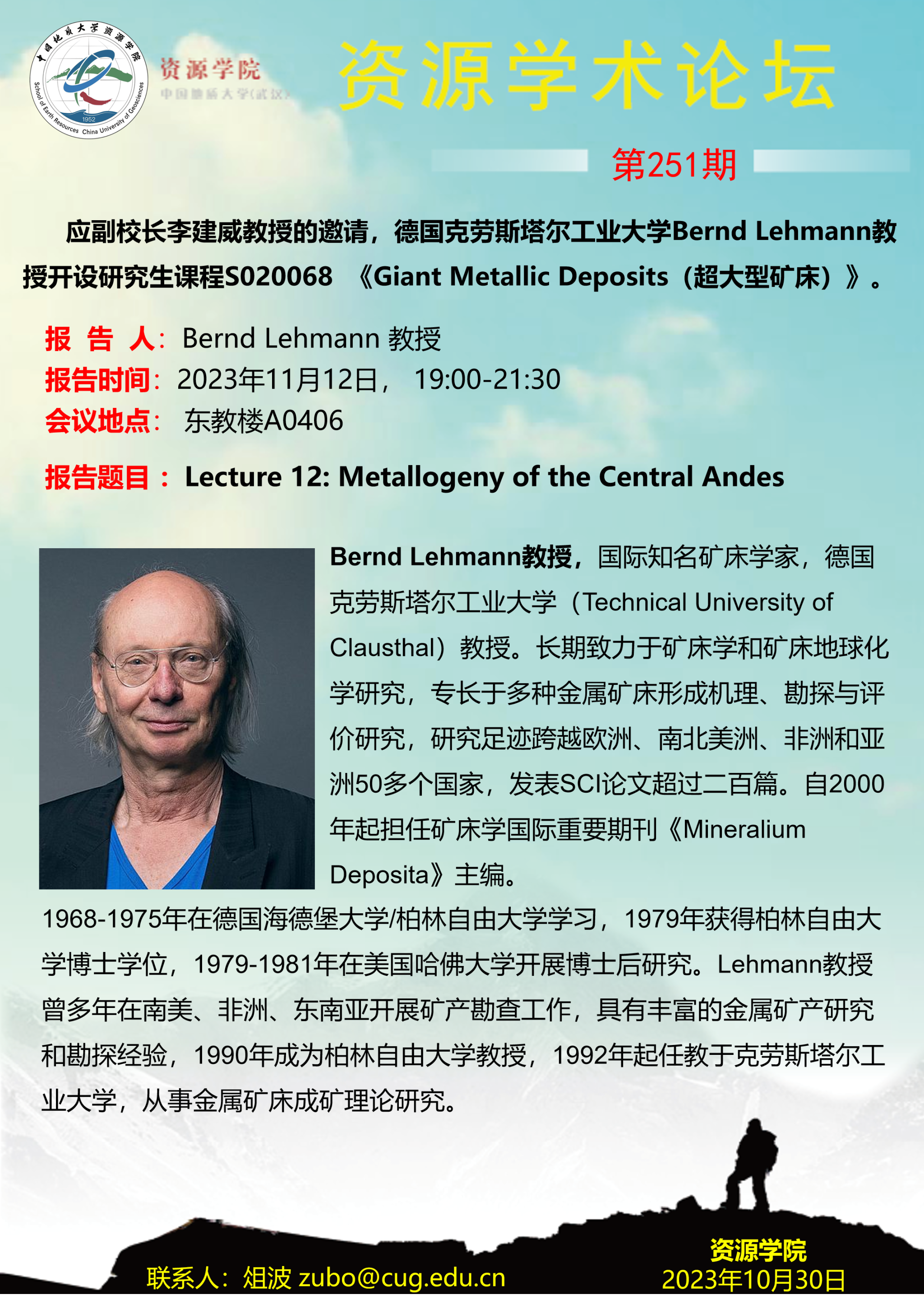 【11月12日】第251期禁漫天堂 学术论坛:Bernd Lehmann学术报告