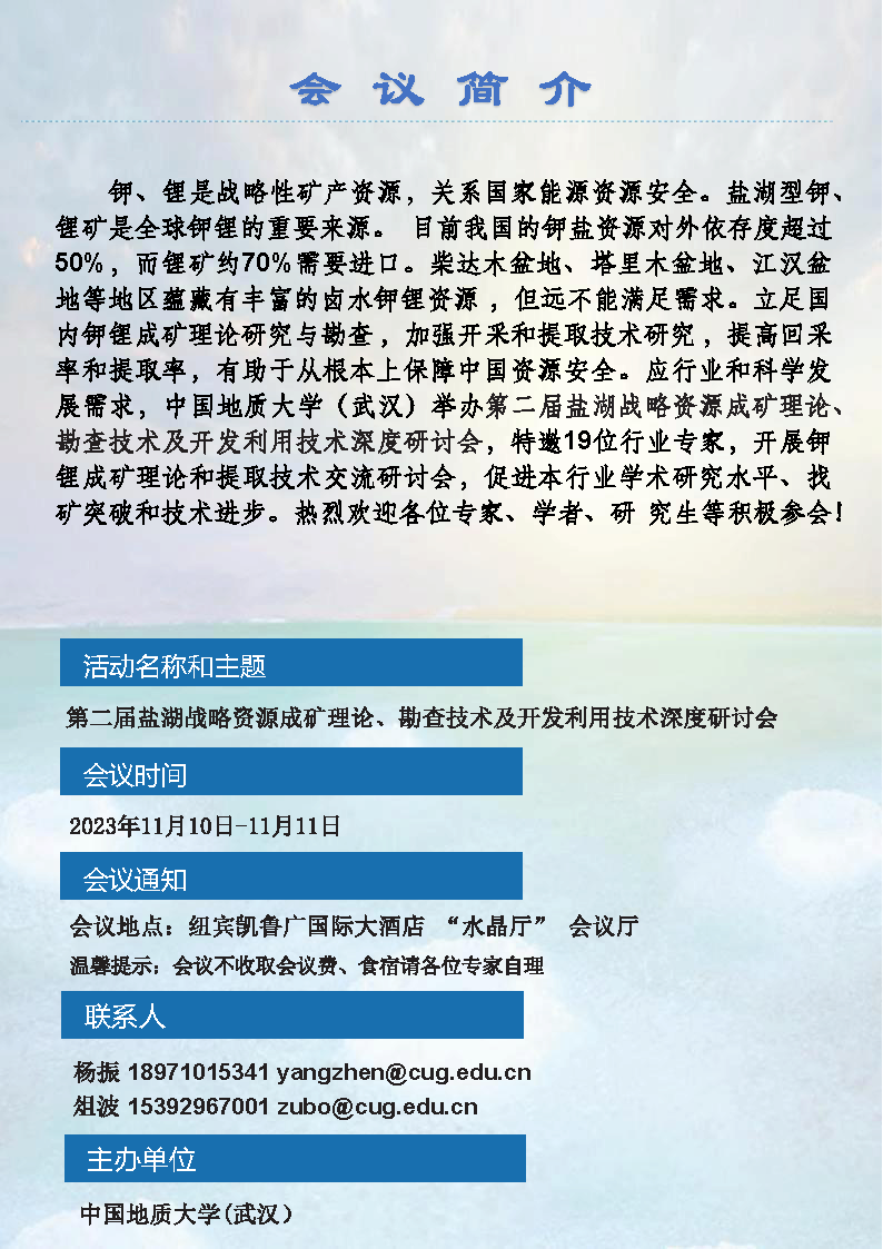 【会议通知】第二届盐湖战略禁漫天堂 成矿理论、勘查技术及开发利用技术深度研讨会