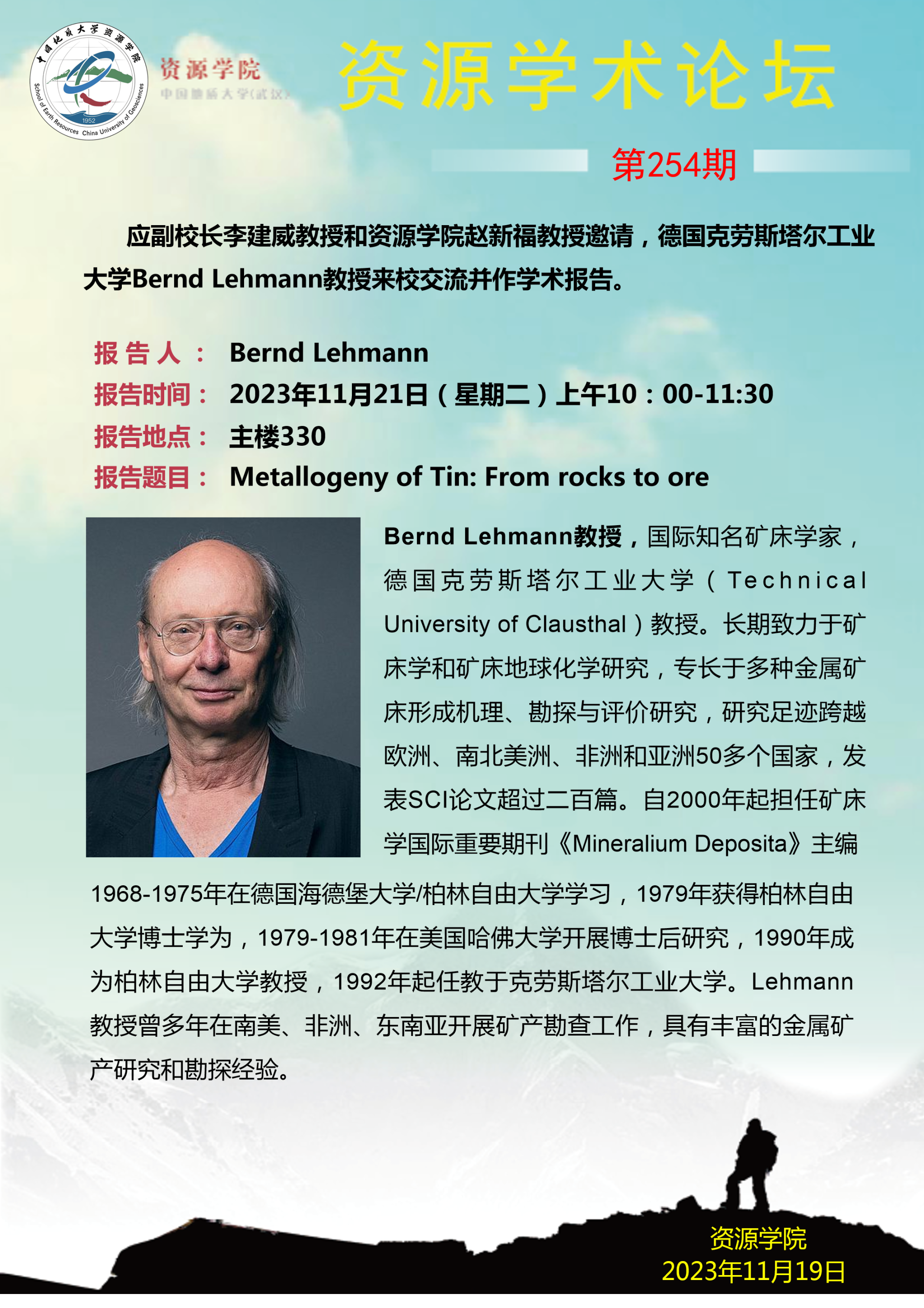【11月21日】第254期禁漫天堂 学术论坛:Bernd Lehmann学术报告