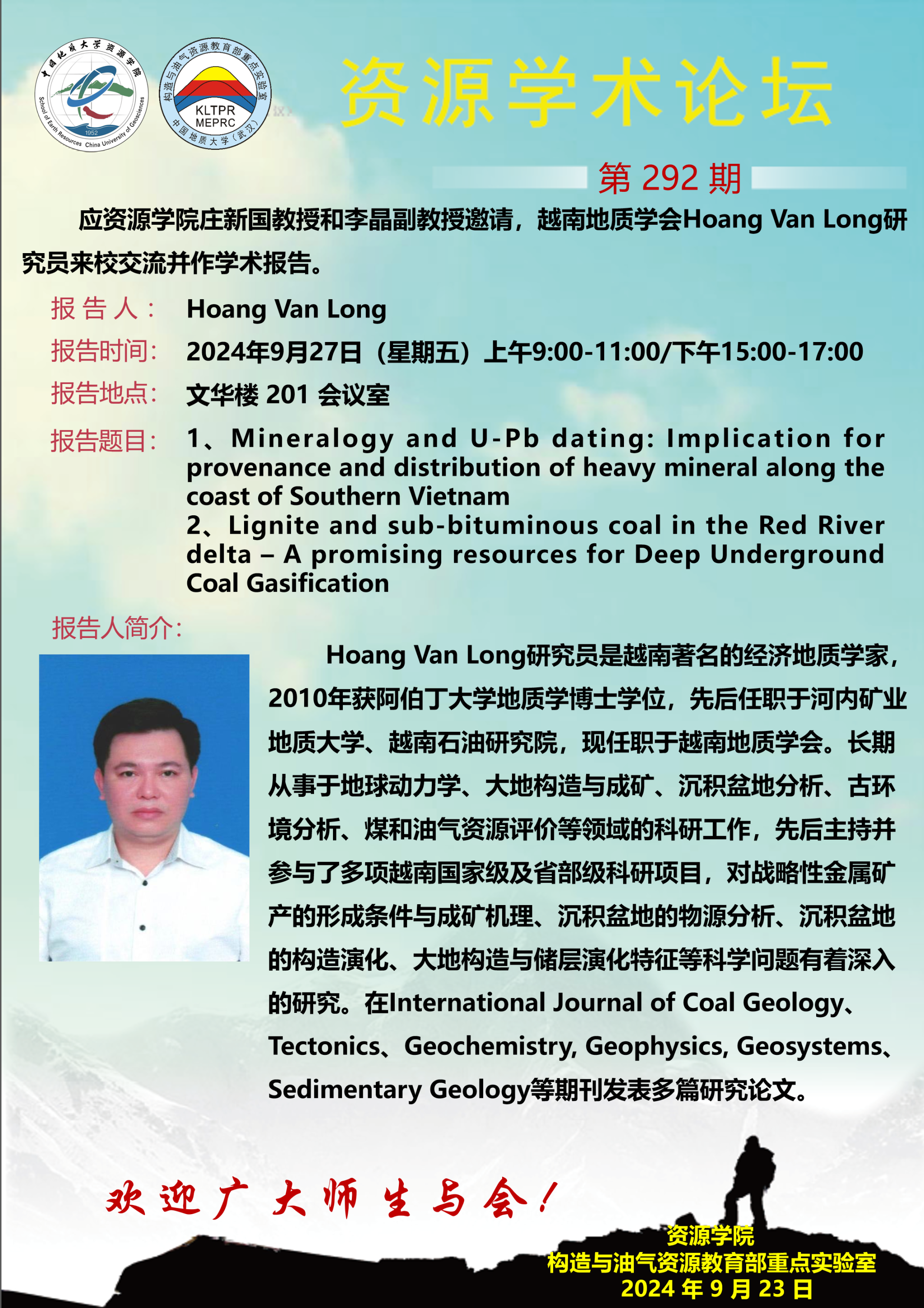 【9月27日】第292期禁漫天堂 学术论坛:Hoang Van Long学术报告