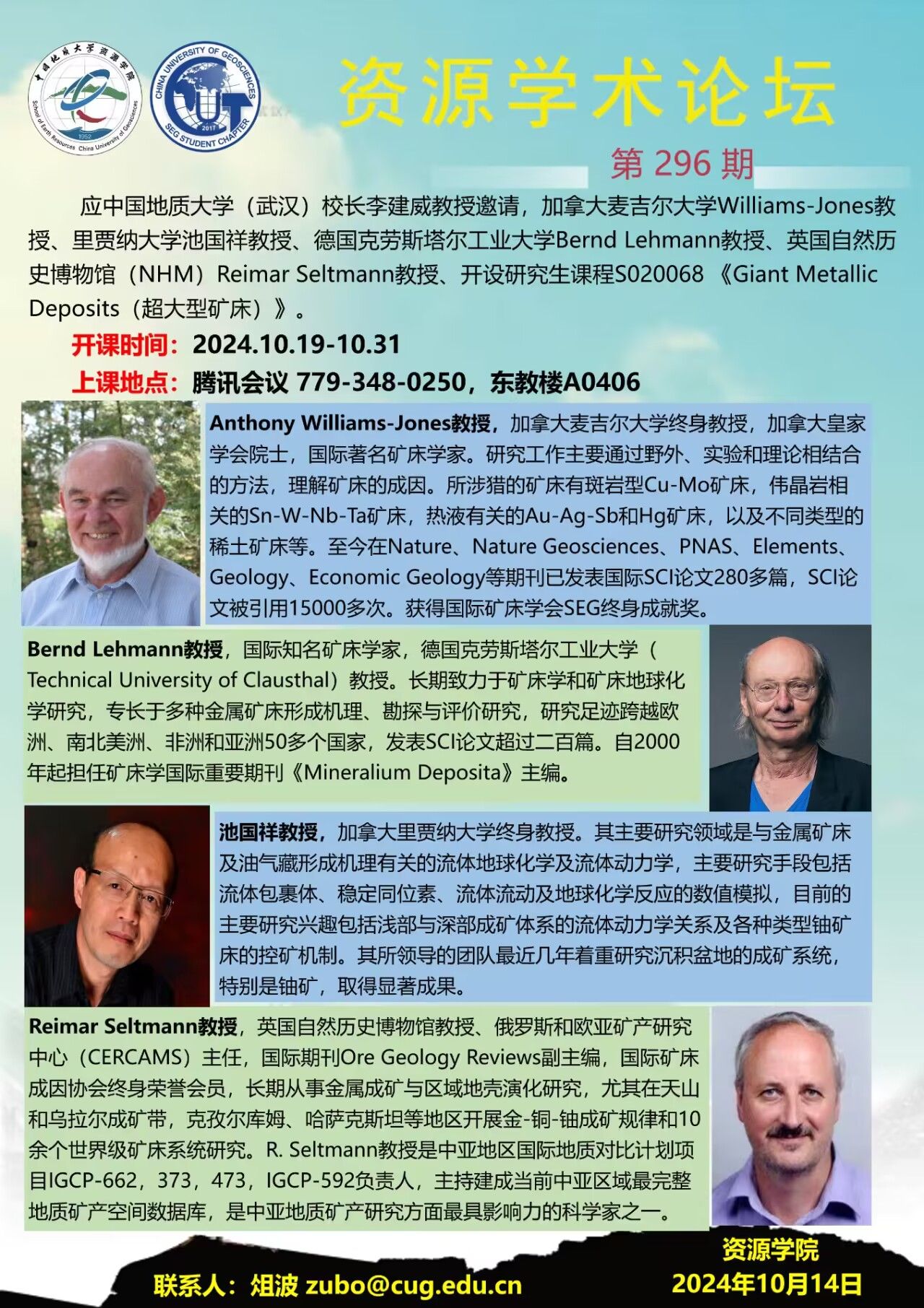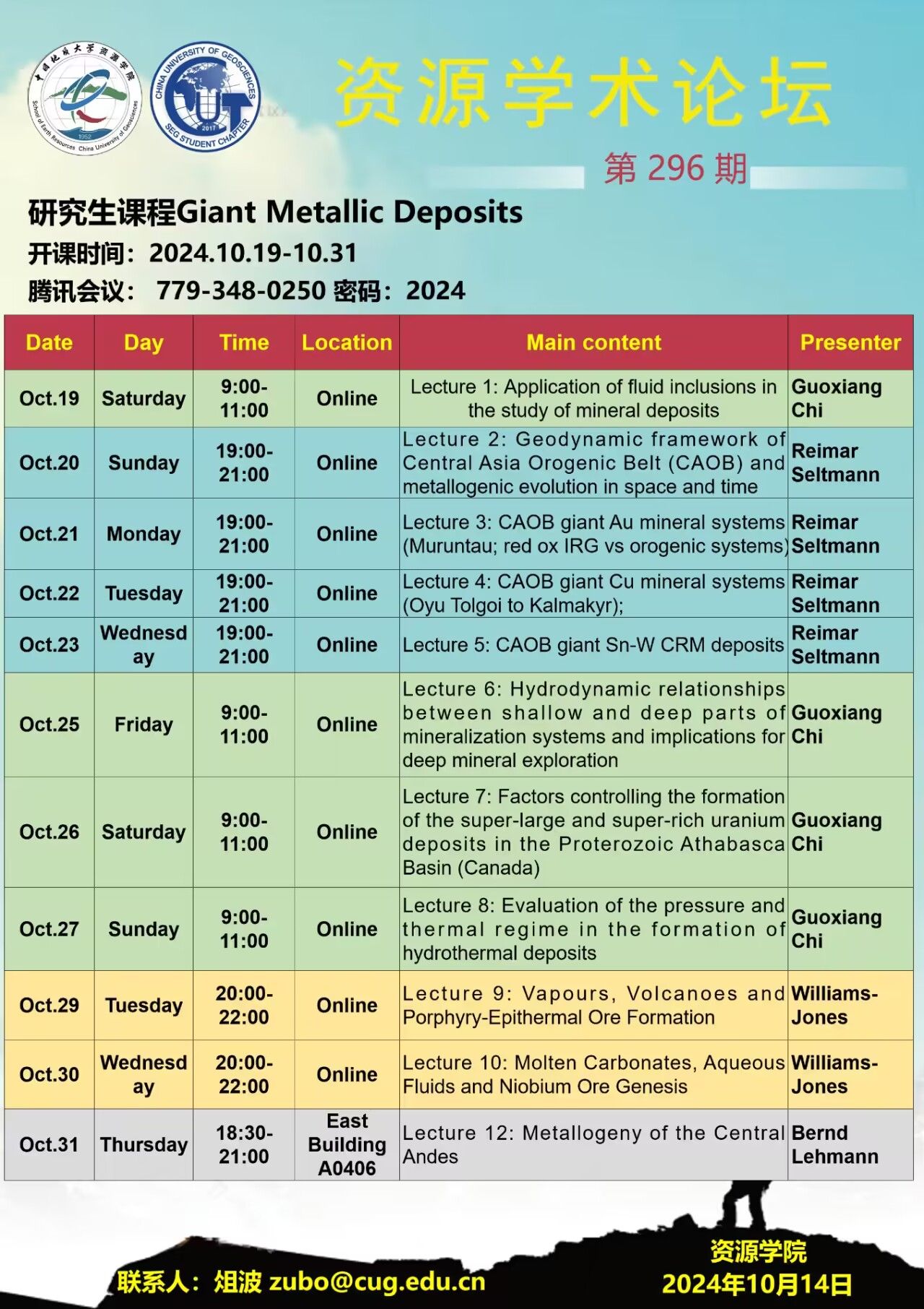 【10月19日-10月31日】第296期禁漫天堂 学术论坛:Giant Metallic Deposits(超大型矿床)