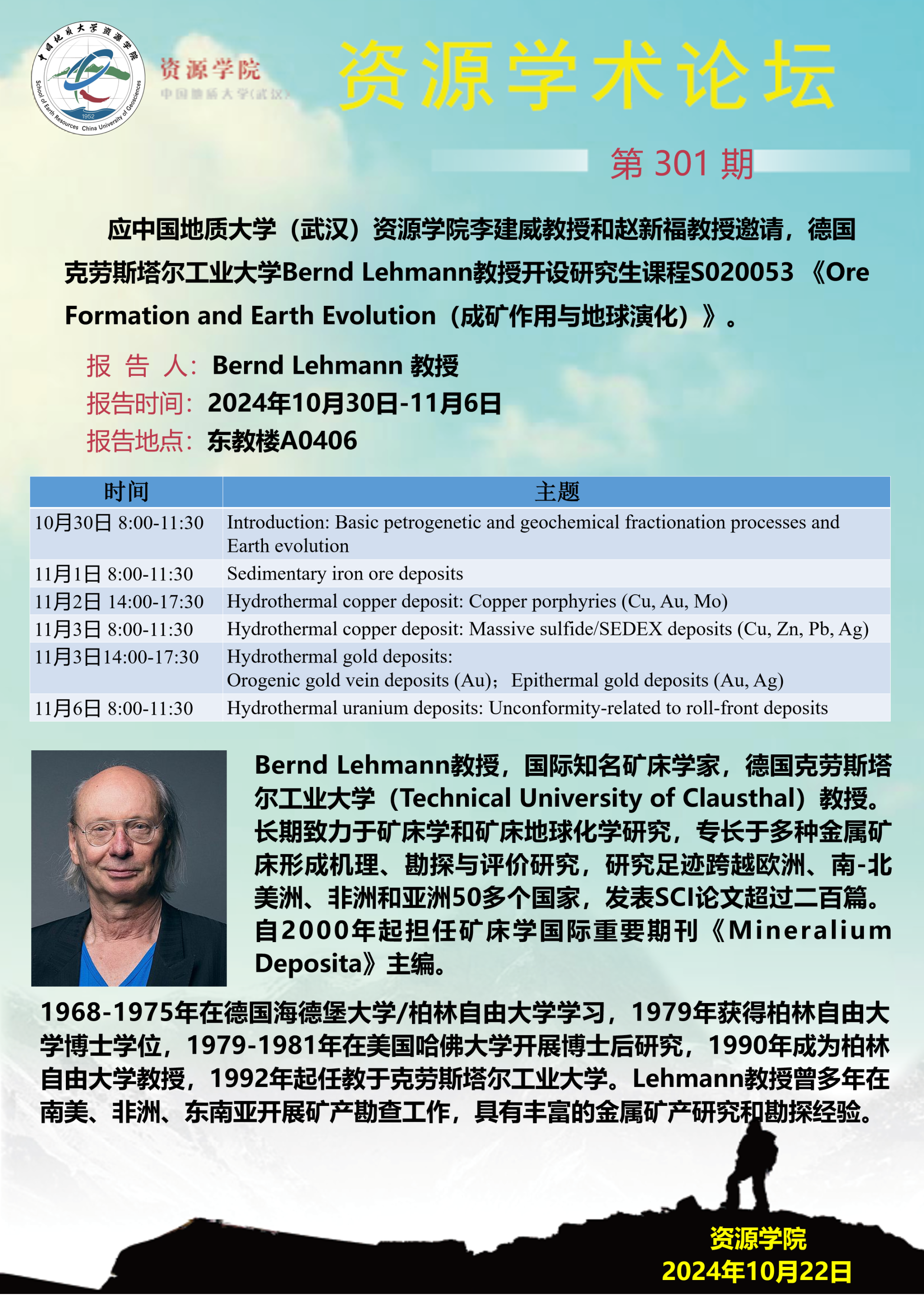 【10月30日-11月6日】第301期禁漫天堂 学术论坛:Ore Formation and Earth Evolution(成矿作用与地球演化)