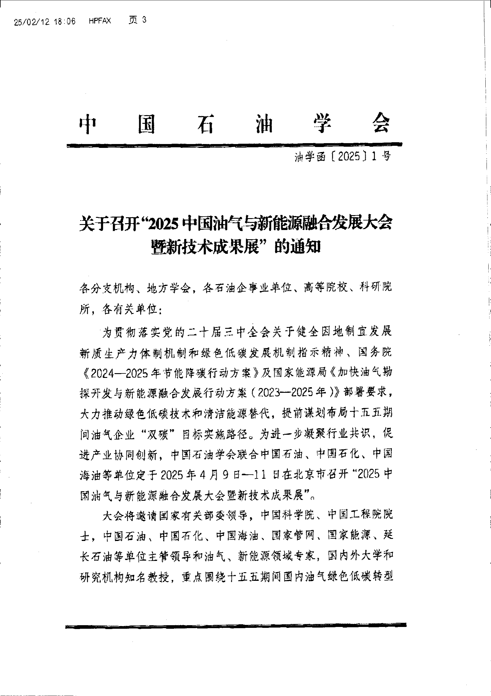 关于召开“2025中国油气与新能源融合发展大会暨新技术成果展”的通知