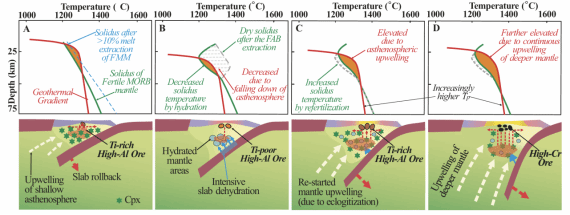 该项工作通过厘定铬铁矿成矿岩浆的具体成分及时空组合特征,首次将蛇绿岩中不同类型铬铁矿的成矿作用均嵌入了初始俯冲的模型框架,拓展了初始俯冲理论的研究内容。同时,通过剖析各类铬铁矿起源的地球动力学背景差异,不仅阐明了蛇绿岩型铬铁矿成分多样化的原因,也深化了对初始俯冲不同阶段演变细节的认知。