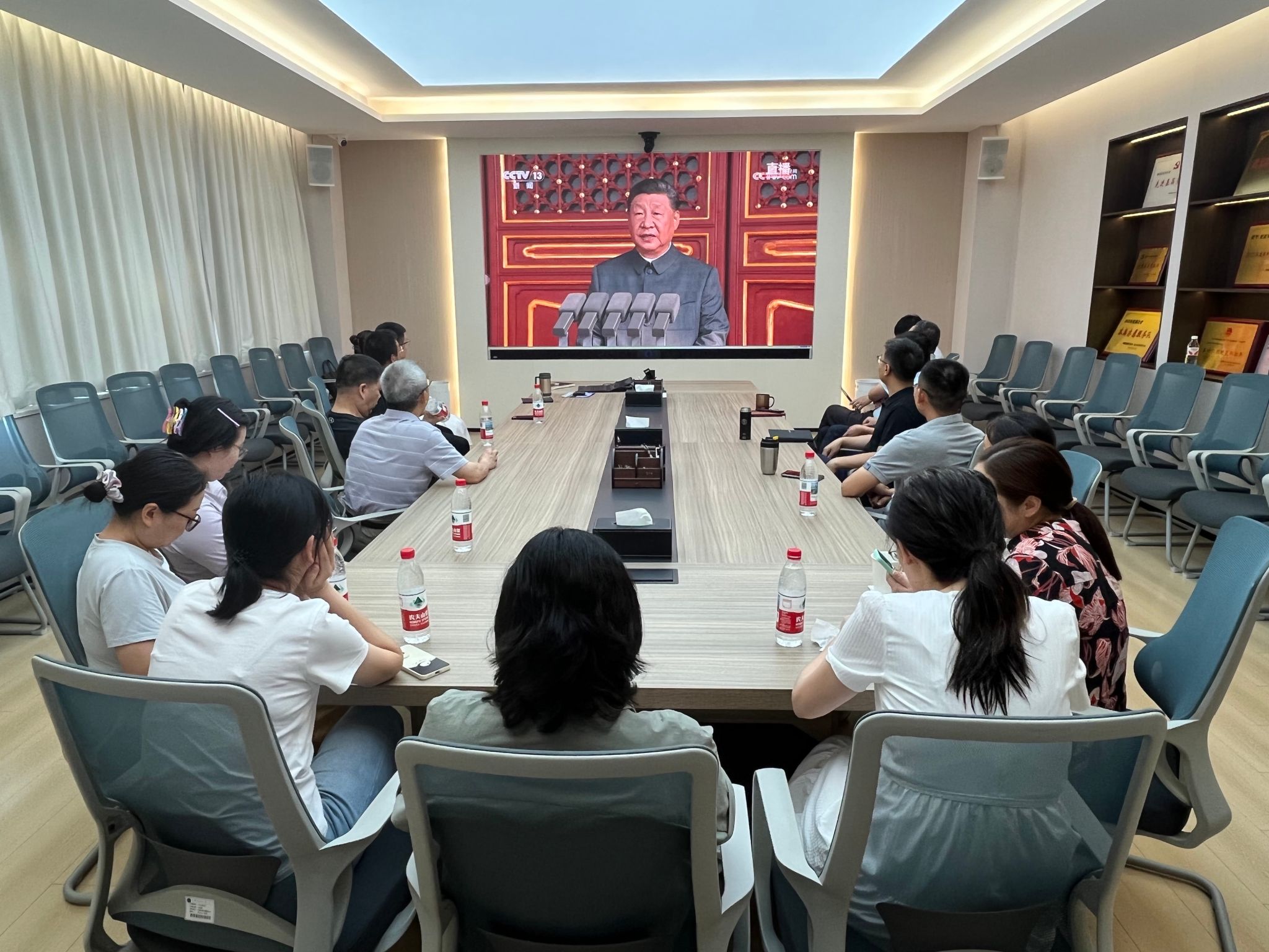 学生党建办公室成员、学生党支部党员代表在文华楼523室观看纪念大会