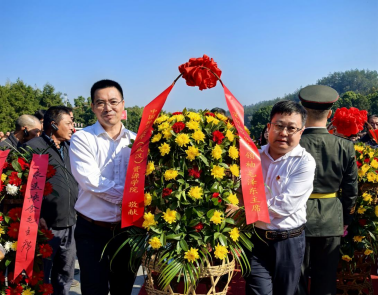 党委书记高复阳、院长严德天带领全体成员向毛泽东同志铜像敬献花篮。