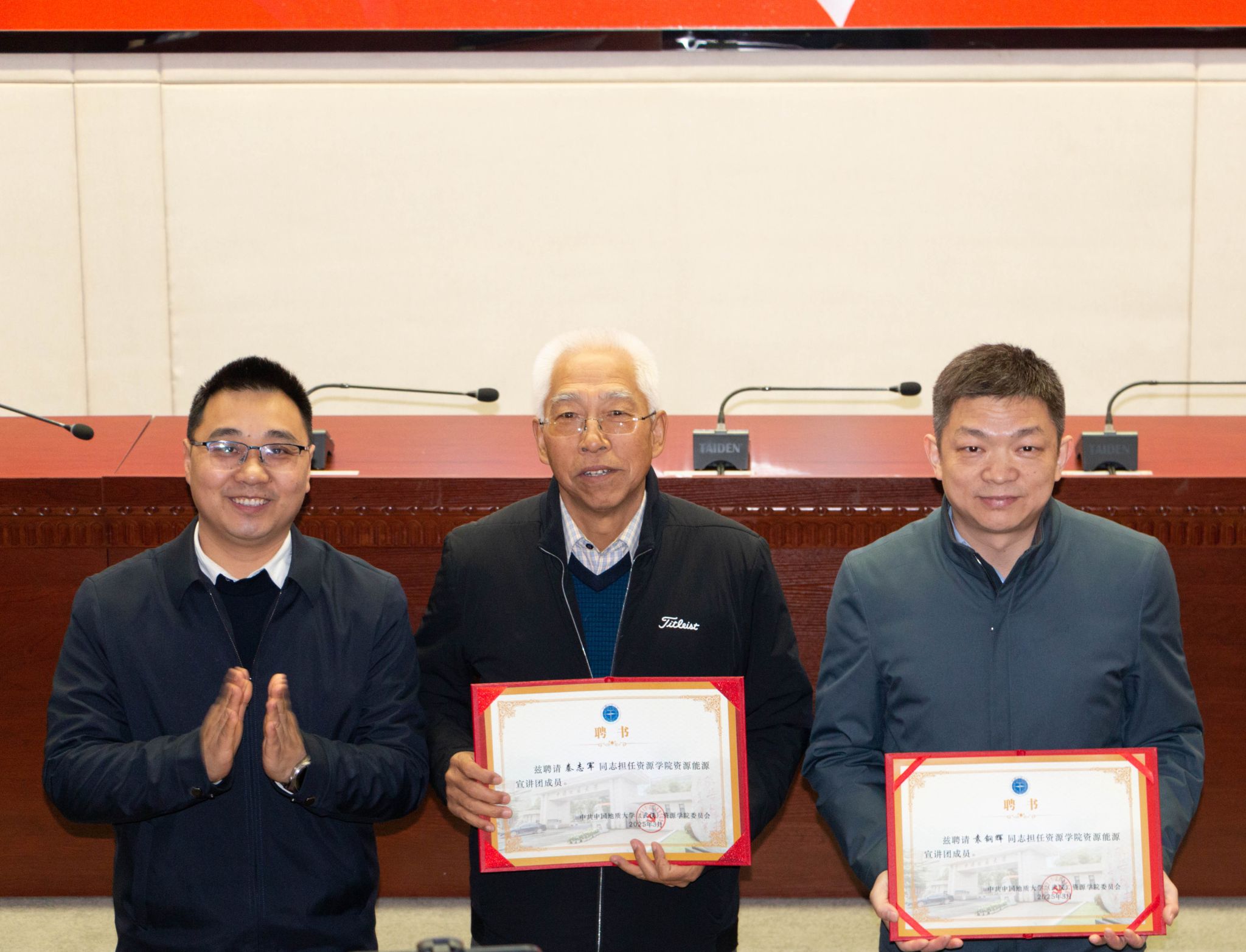 禁漫天堂 党委书记汪再奇为秦志军董事长和袁钢辉总经理颁发禁漫天堂 产教融合企业导师聘书与资源能源宣讲团聘书。