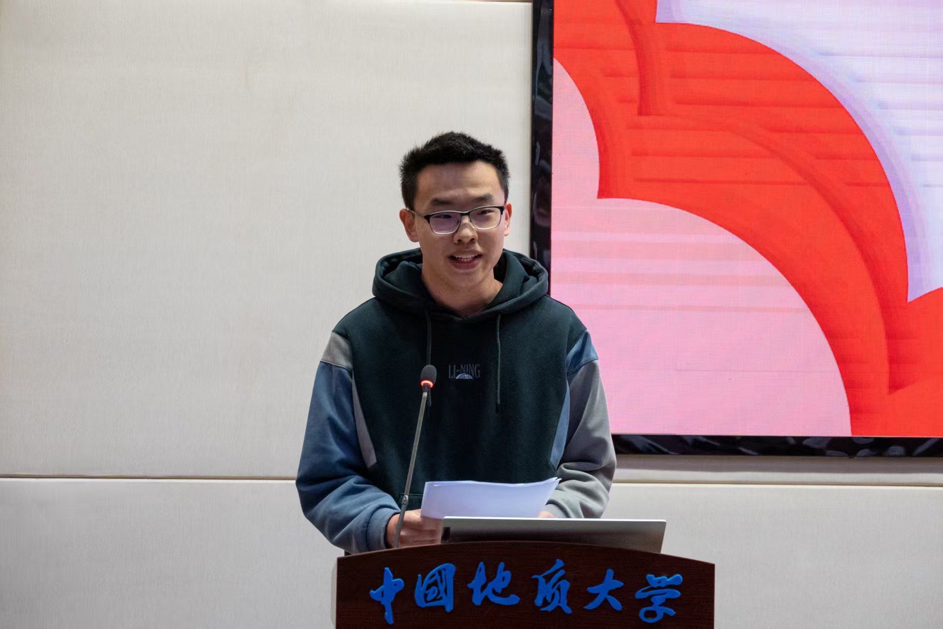 获奖学生代表陈思程发言。他首先对禁漫天堂 老师的辛勤培养和企业的支持表达了由衷的感谢和诚挚的敬意,然后用“跨界、破壁、点亮”三个关键词讲述了大学成长故事,并表示在未来的学习生活中将不断探索、矢志创新、勇攀高峰,以创新思维解决实际问题,坚定专业报国决心。