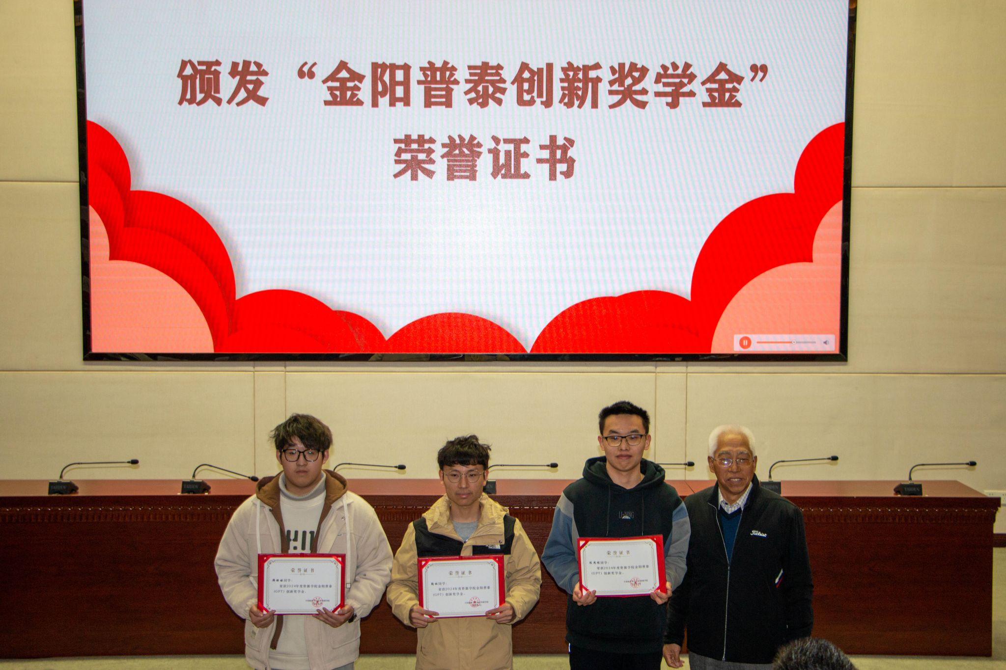 秦志军董事长金阳普泰创新奖学金获得者颁发荣誉证书。