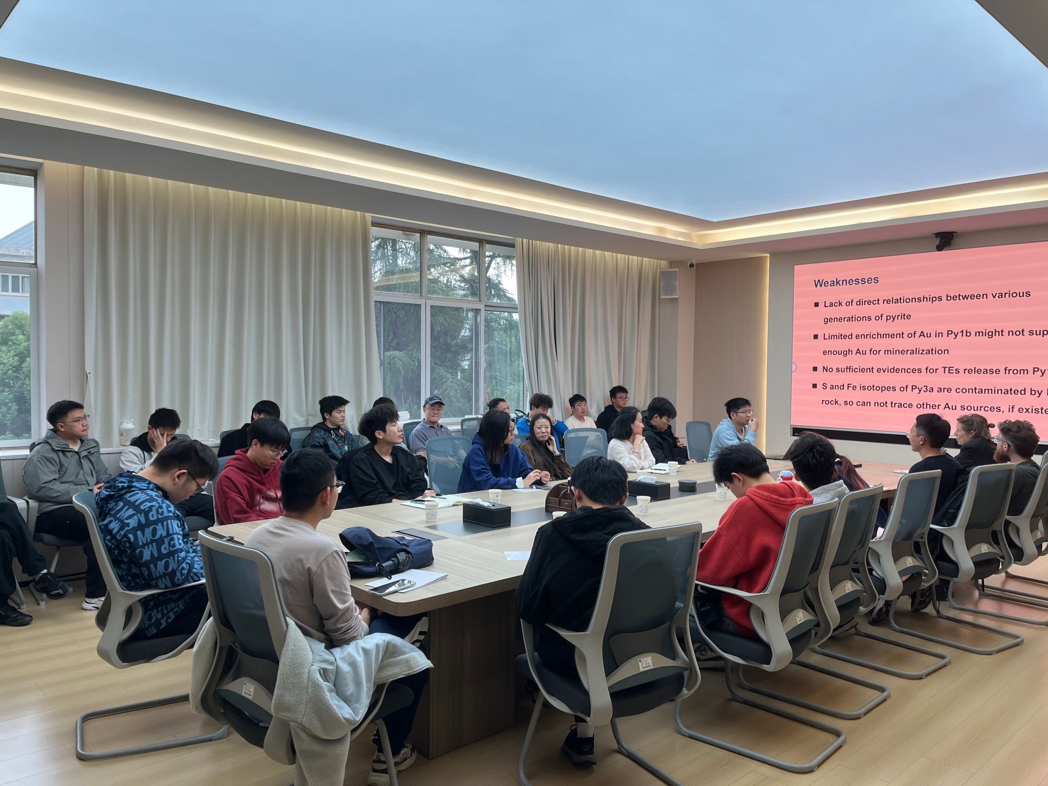(通讯 王华)为深化矿床学领域学术交流,拓展研究生国际化学术视野,强化研究生党员在学术领域的引领效能。 2025年10月31日,矿床学研究生党支部携手SEG学生分会,举办了一场高水平的国际学术沙龙。活动特邀澳大利亚科廷大学 Katy Evans 教授和 Stefano Tenuta博士莅临指导,围绕矿床学与地球化学前沿议题展开深度分享,为在场师生带来一场融合理论与实践的学术盛宴。