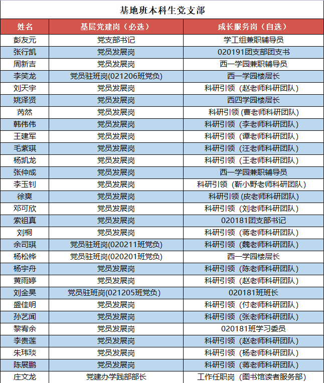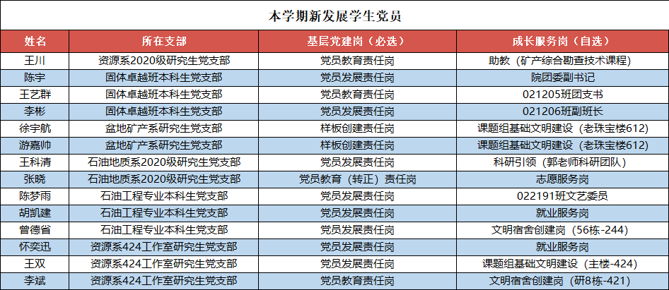 学生党建工作办公室核准,现已基本完成全院500余名学生党员设岗工作。现分批对学生党员岗位进行公示,接受广大同学监督评议。