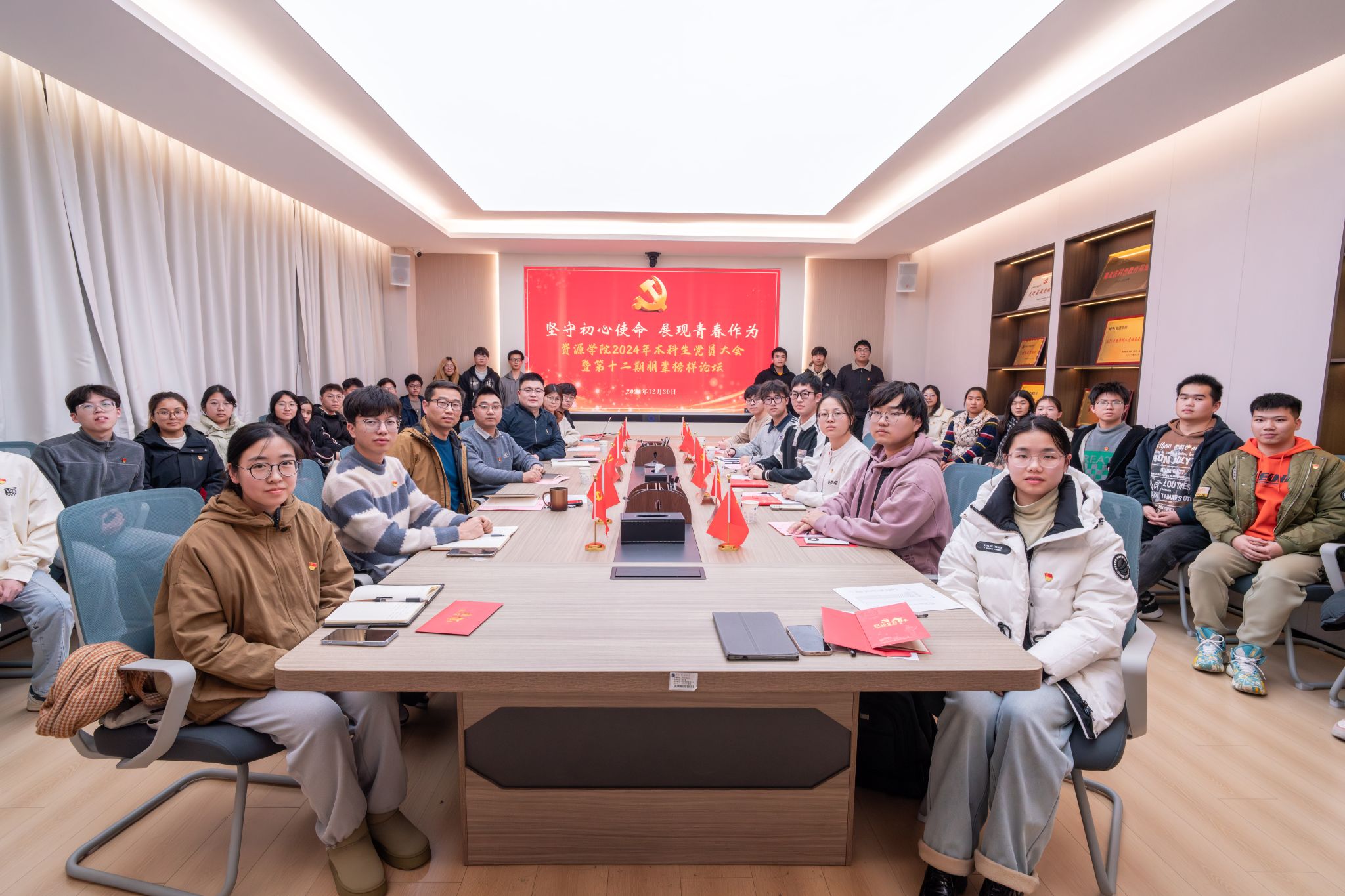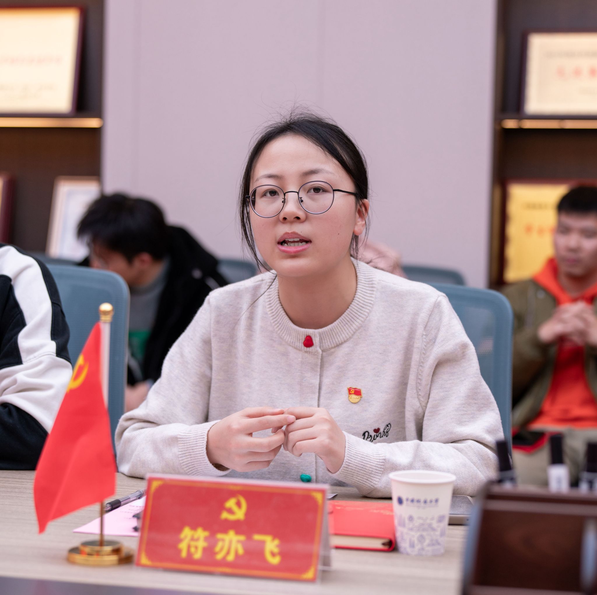 党委书记汪再奇、党委副书记谭文伦,辅导员彭鑫,兼职辅导员李娜娜,本科生党员、入党积极分子代表参加会议。彭鑫主持会议。