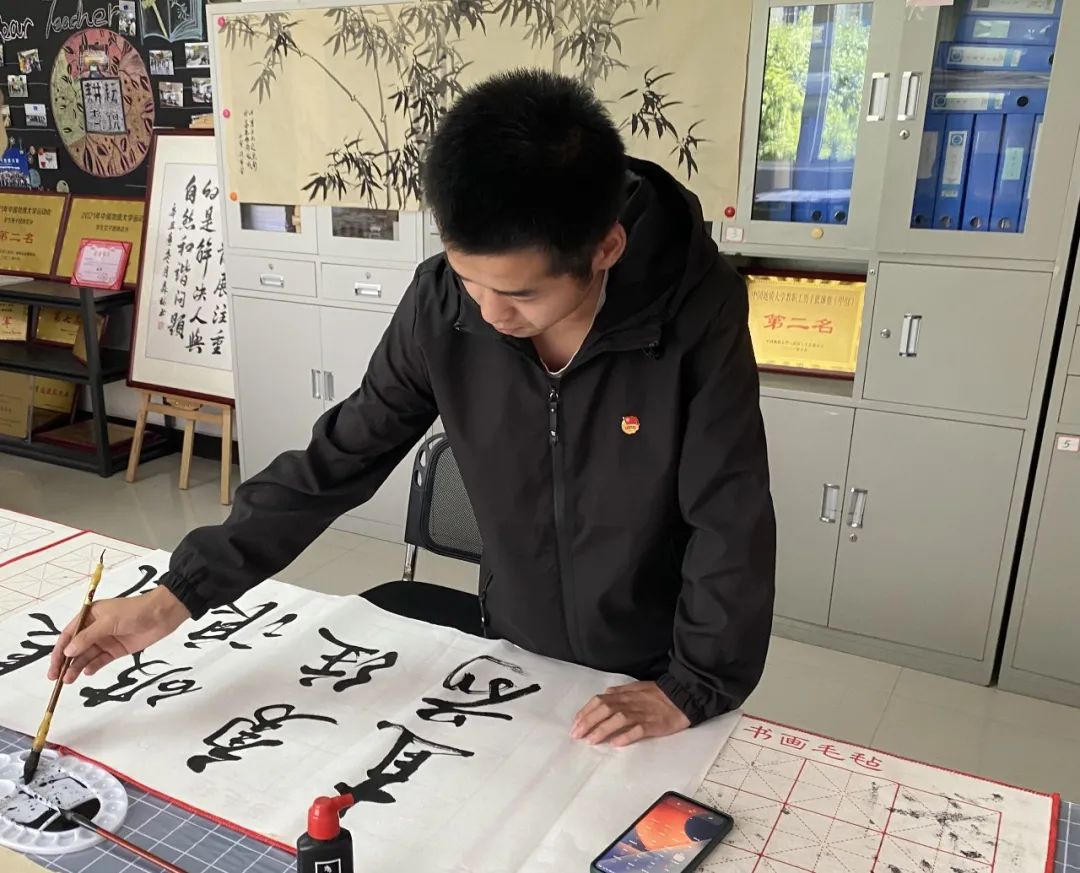 学子走进青年之家,用书画描绘青春最美姿态,庆祝中国共产主义青年团成立100周年,以青春之我,唱响爱国强音。