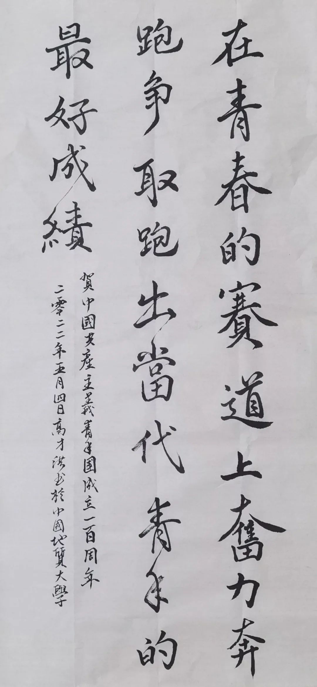 正值五四青年节之际,泼墨挥毫,挥翰临池,书写对祖国和团的美好祝愿,对未来的期盼。每个人都写出了属于青年人独有的豪迈与冲劲。“在青春的赛道上奋力奔跑,争取跑出你们这一代人的最好成绩!”习总书记在中国人民大学考察时说到。作为一名禁漫天堂