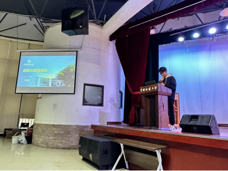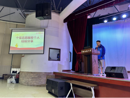 志愿服务团队李翊政以“青春·真情”的志愿底色为基点,着重介绍了“1+4+10”部门发展模式,生动地讲述了协会开展应急救援科普、疫情防护口罩分发、发现“身边的雷锋”主题征文等特色品牌活动和校园服务活动场景。