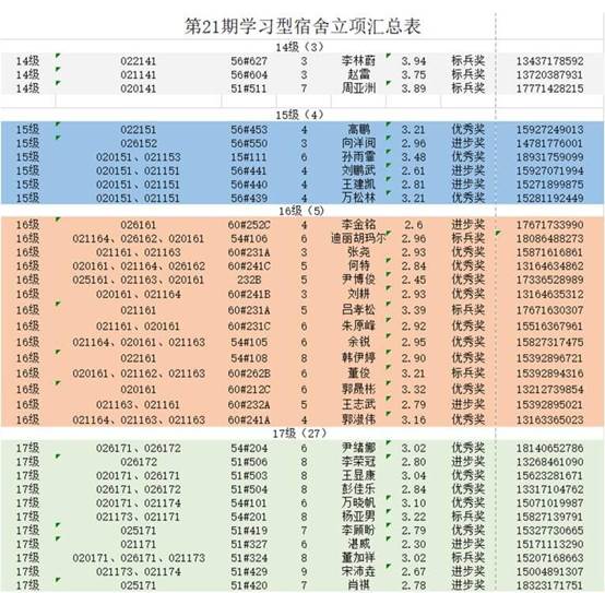 的良好学风。在第21期学习型寝室活动中,以下宿舍立项成功,特此公示。希望这些宿舍在接下来的学习生活中,不忘初心,积极上进,争取结题成功。