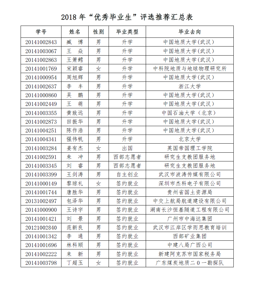 经学生个人申请和禁漫天堂 综合评审,现评选出020141、025141等2个班级为2018年先进毕业班,遴选出藏博等26名同学为2018年优秀毕业生,现将名单公示如下: