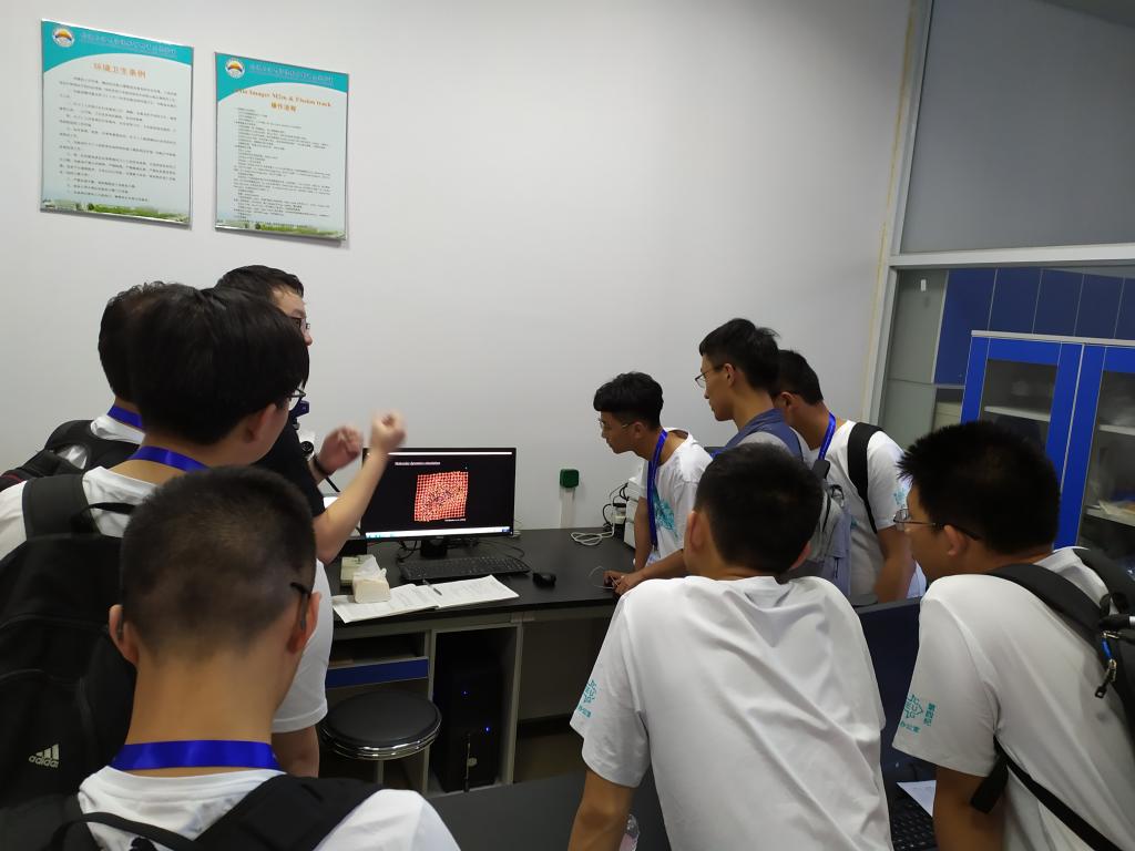 随后,营员们先后到稳定同位素质谱仪实验室和裂变径迹自动统计系统实验室进行参观。实验室的工作人员向大家详细地介绍了稳定同位素质谱仪和裂变径迹系统工作原理和操作步骤。同学们兴趣浓厚,不断与老师和学长们互动。