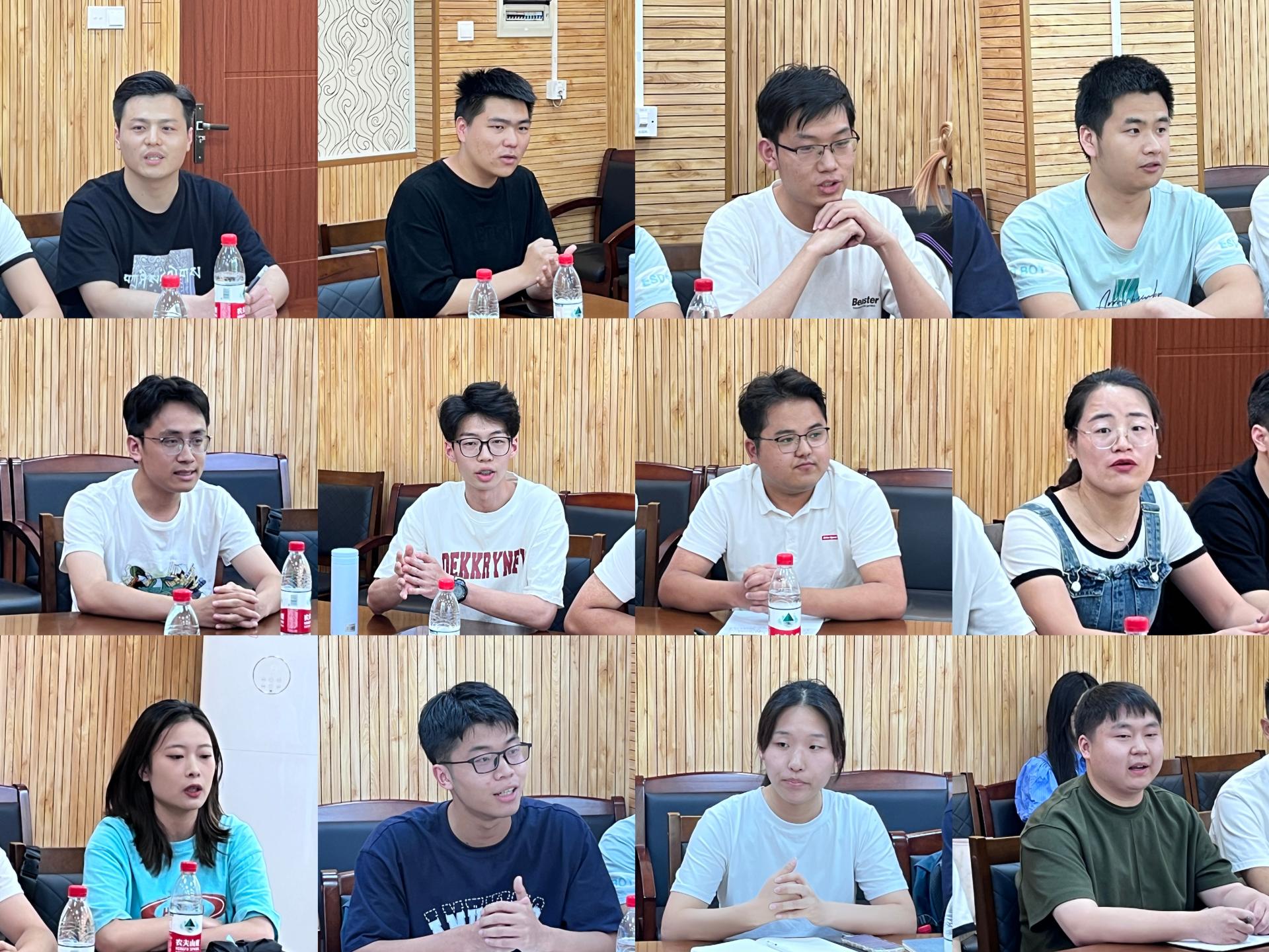 在文华楼201室举行2023届毕业生座谈会。院党委书记高复阳、院长严德天、党委副书记谭文伦,各系主任、党支部书记,班主任、辅导员,教务科、研究生科负责人与15名毕业生代表围坐一起,分享青春故事、畅叙地大时光、共话美好未来。2019级本科生辅导员刘睿主持会议。