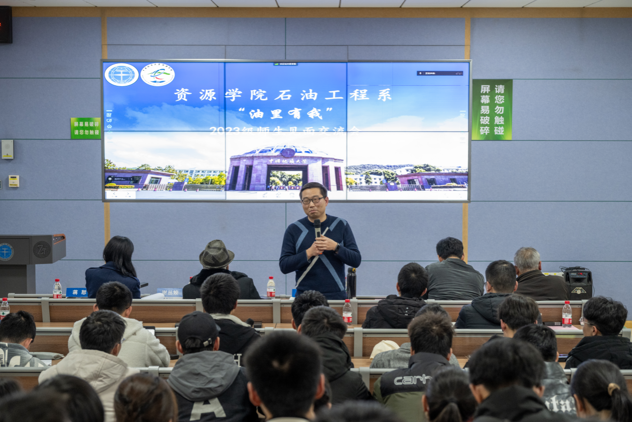 谭文伦就石油工程系的红色基因、精神培育、育人模式、就业前景等方面进行了交流,指出石油行业对国家发展和能源安全的极其重要,期望同学们在老师们的指引下坚定能源报国志向,夯实专业基础,锤炼专业本领,贡献青春力量。