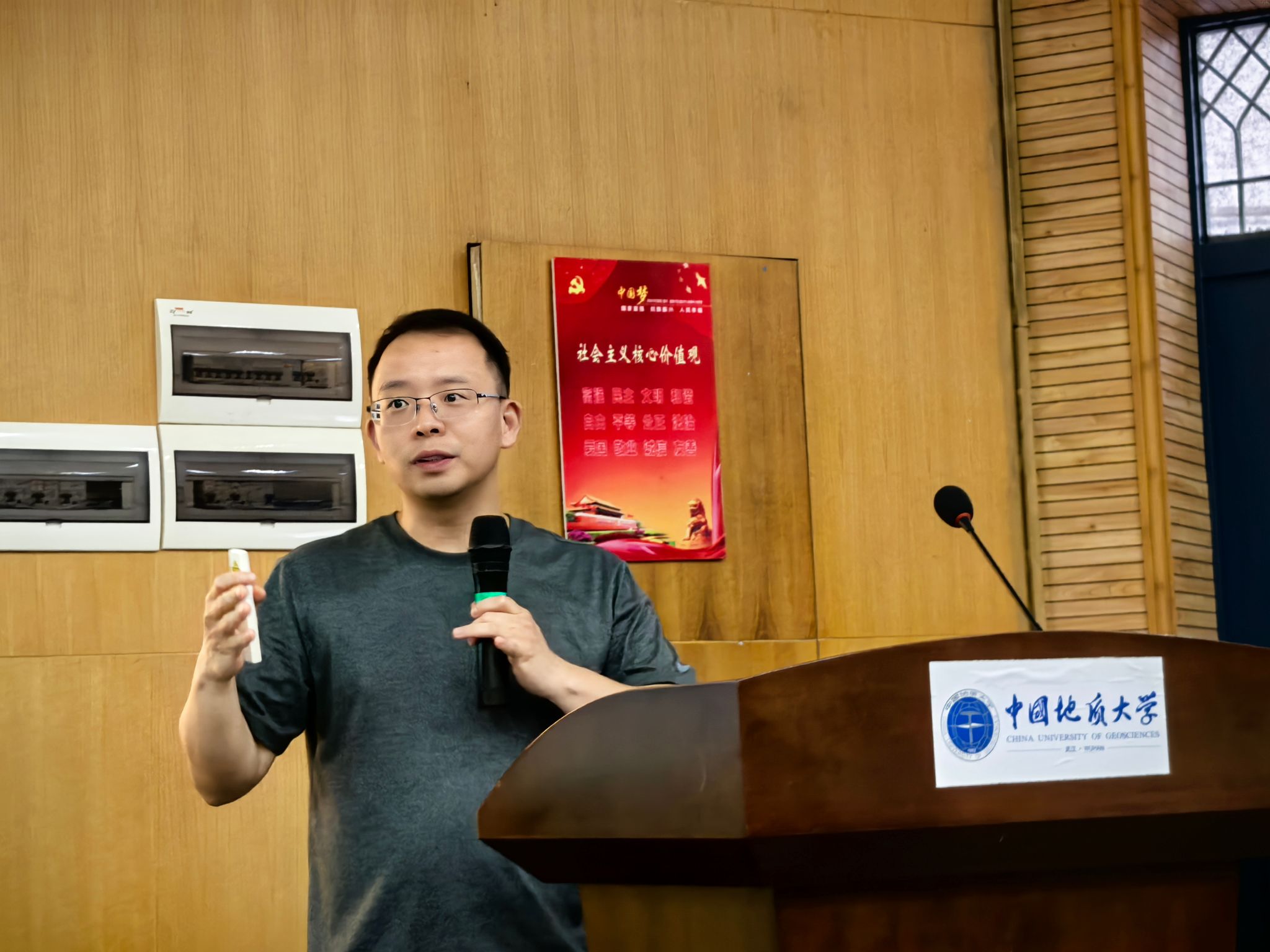 、实习目的和要求、实习内容与考核方式、时间安排与人员组成、注意事项、活动规划七个方面展开。他提到,周口店实习是在一年级北戴河地质认识实习、二年级专业基础课程学习的基础上所进行的一次重要的综合性野外地质调查基本训练,意义重大,希望同学们珍惜此次实习机会,注重培养艰苦朴素、求真务实的精神和品质,努力将书本地质知识转化为野外实践能力,在行走的实践课堂中感受地质魅力。