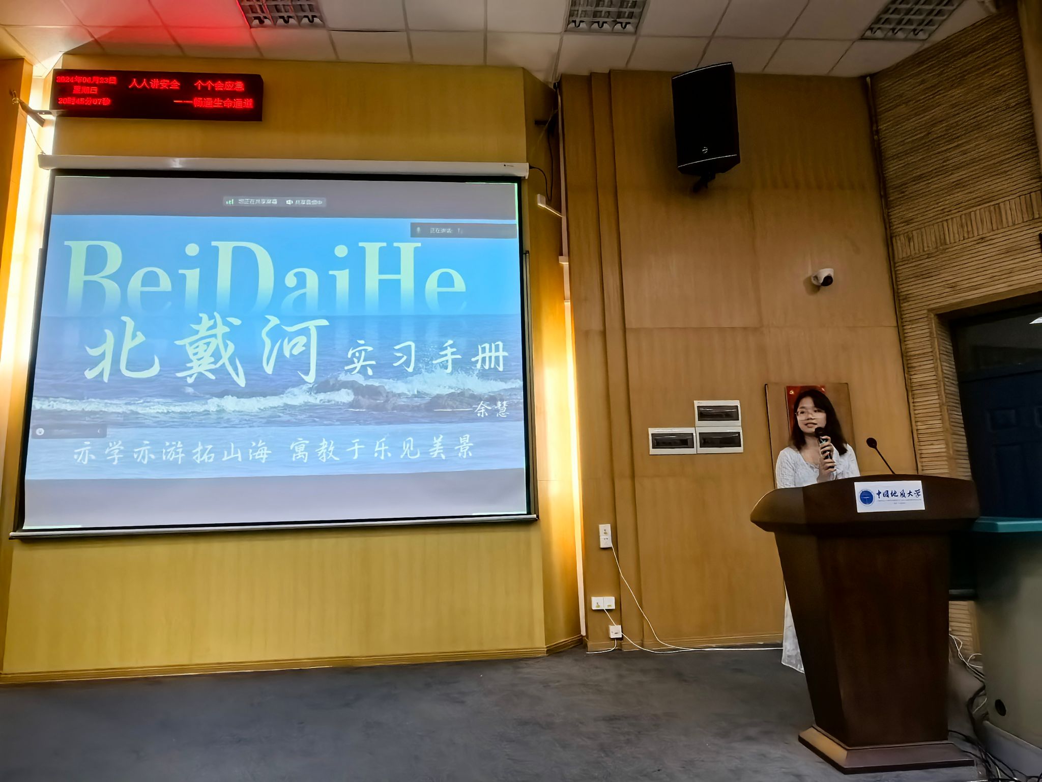 2024届学生会执行主席余慧作《北戴河攻略》实习主题分享。她真诚赠言大家四个“尽情”,即尽情期待、尽情学习、尽情实践、尽情回忆,并期望大家亦学亦游拓山海、寓教于乐见美景,学在旅途、乐享其中。