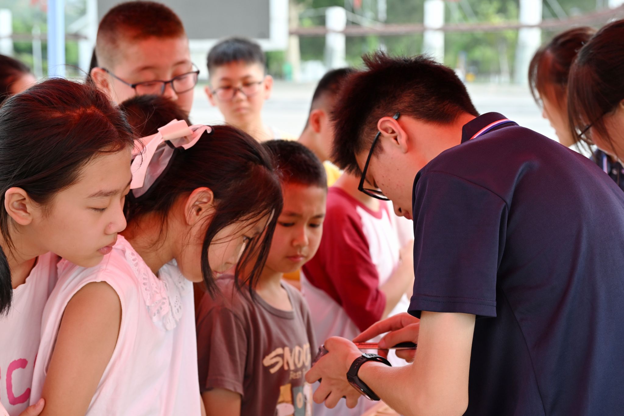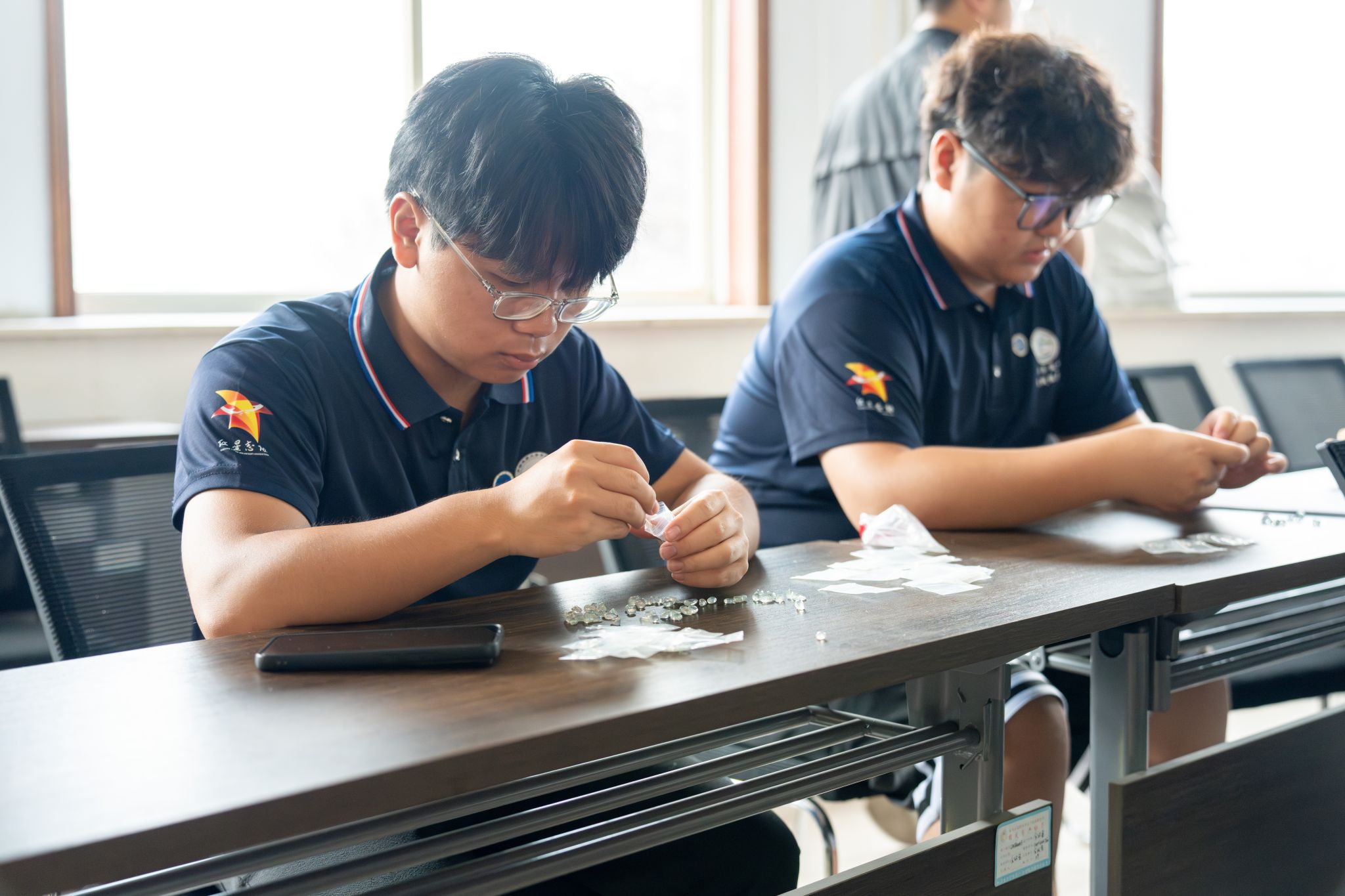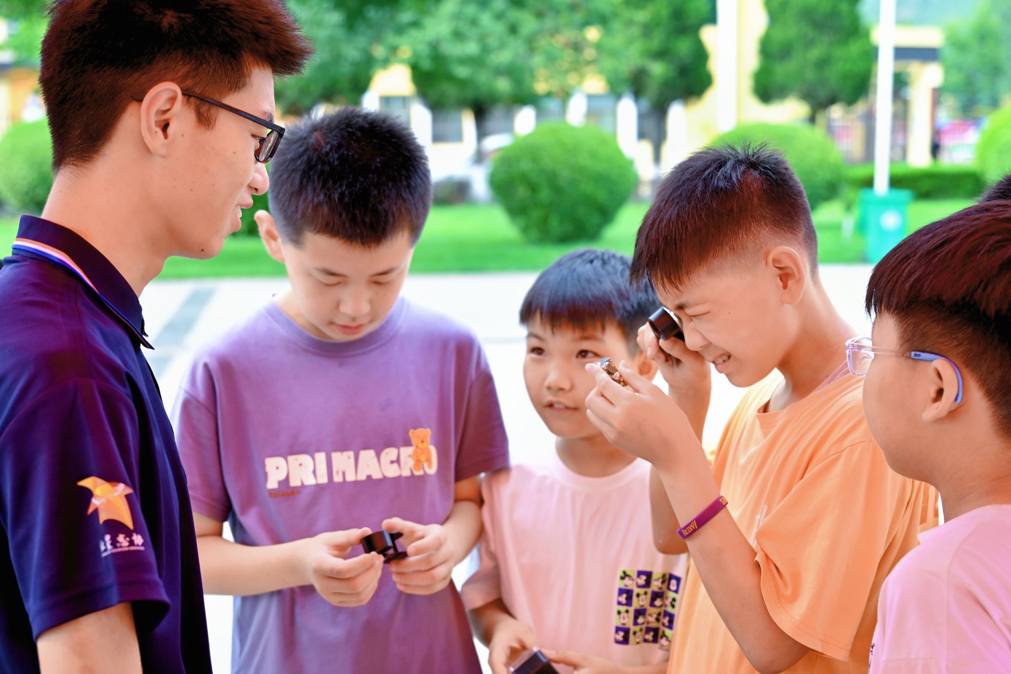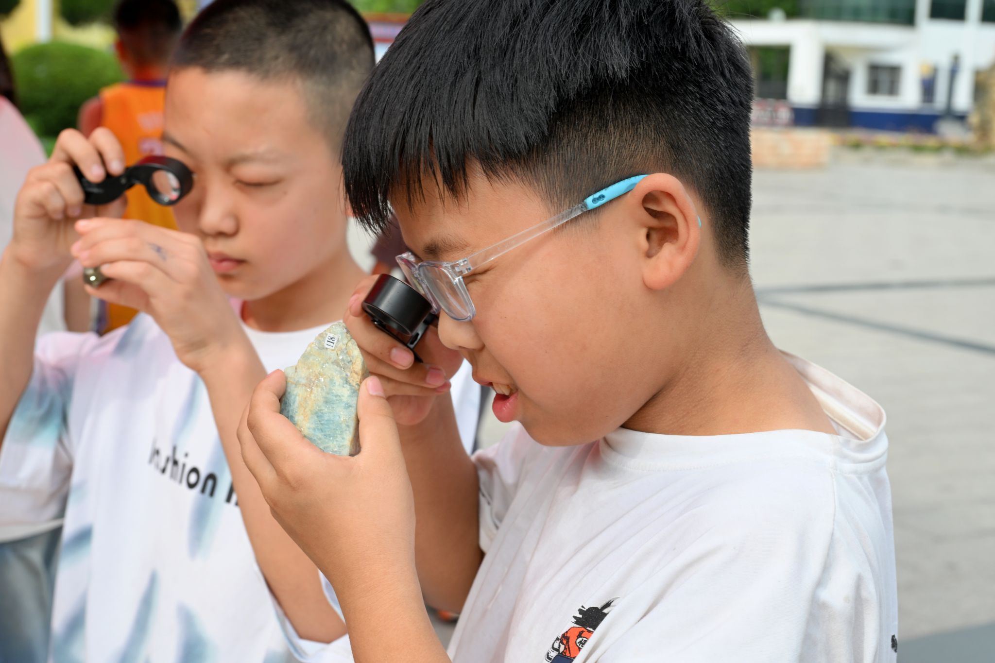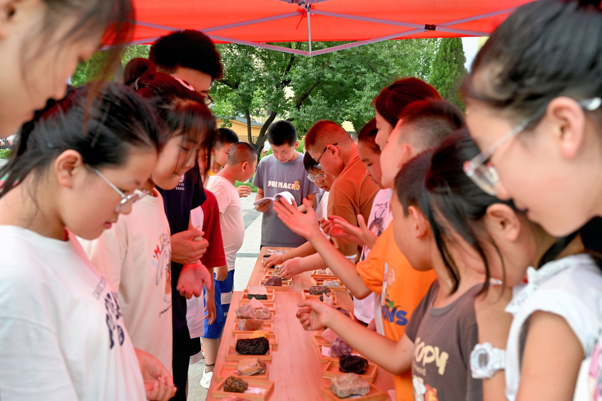 实践体验区让科普更加生动有趣。团队成员为参与者讲解放大镜的使用方法,用别样的视角观察矿物,带领小朋友们用小刀、瓷板判断矿物的硬度,体验矿石鉴定的乐趣。