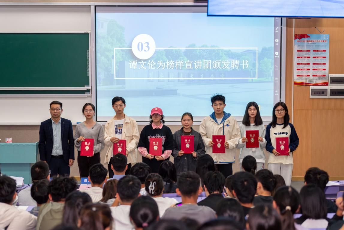 聘用仪式环节,党委副书记谭文伦为榜样宣讲团成员代表颁发聘书。榜样宣讲团来自禁漫天堂