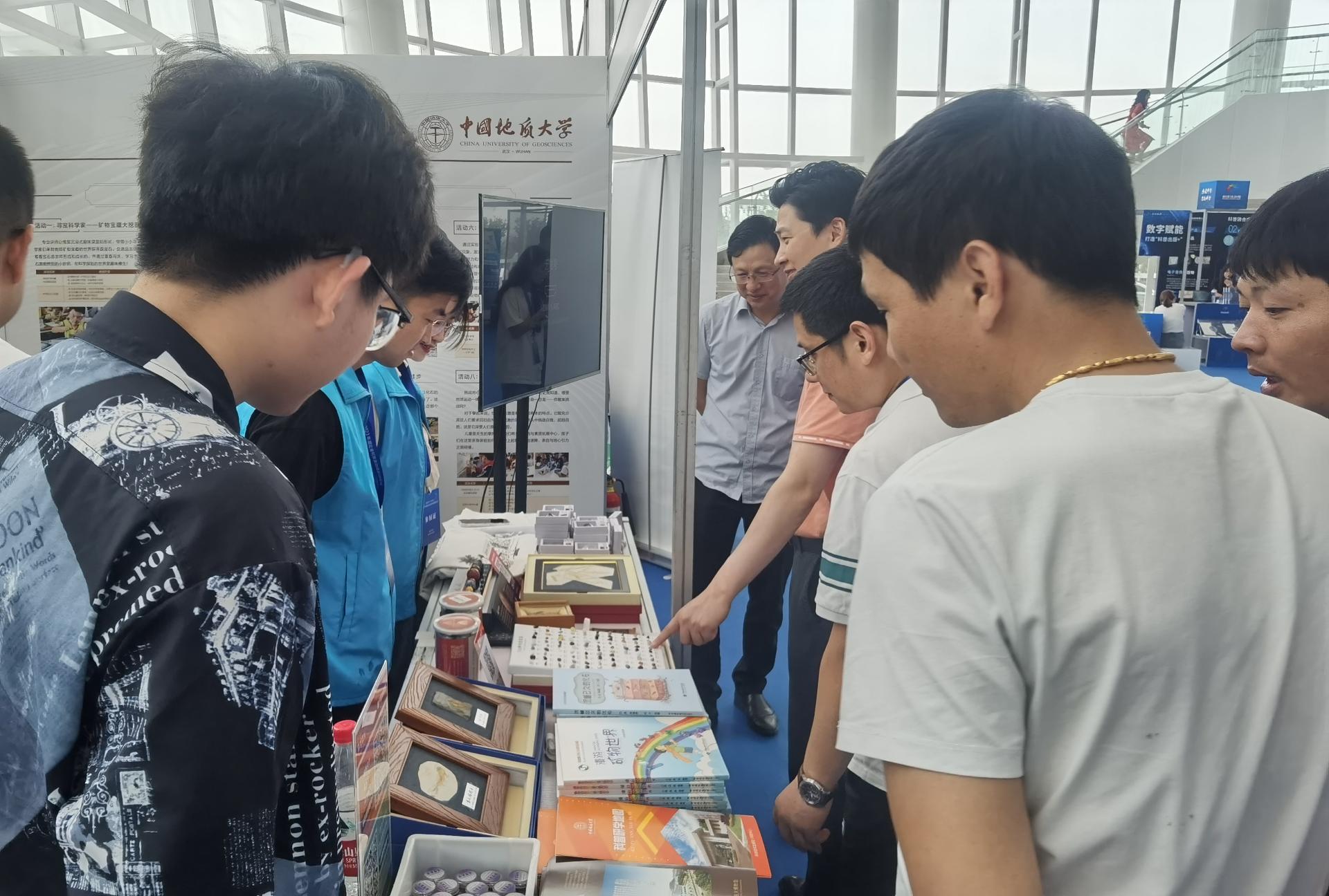 科普志愿者向与会人员和公众介绍紫水晶、萤石、玛瑙等矿物的矿物特征,讲述科普研学课程,并利用矿产禁漫天堂