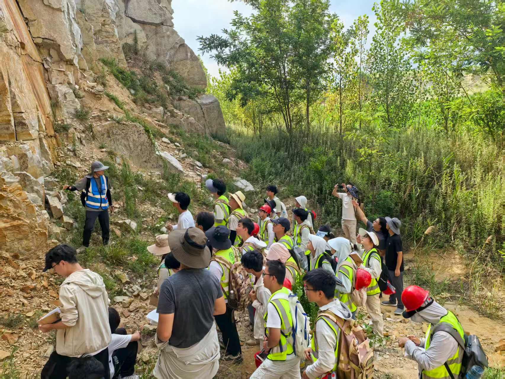 汪再奇一行在教职工宿舍、学生宿舍看望慰问实习师生,了解野外教学安排与进展,细致了解了师生在基地的生活学习情况。他充分肯定了实习师生在野外实践教学中的表现,赞扬了野外教学团队在野外教学中充分融入思政元素的做法。他叮嘱教学团队一定要高度重视野外教学实践的安全,把安全放在重中之重,平稳顺利完成威海教学实习。他勉励同学们,要强化野外实践工作基本功,按照教学计划扎实完成野外实践中的各项任务,磨砺意志品质,为未来从事工作打下素质基础。