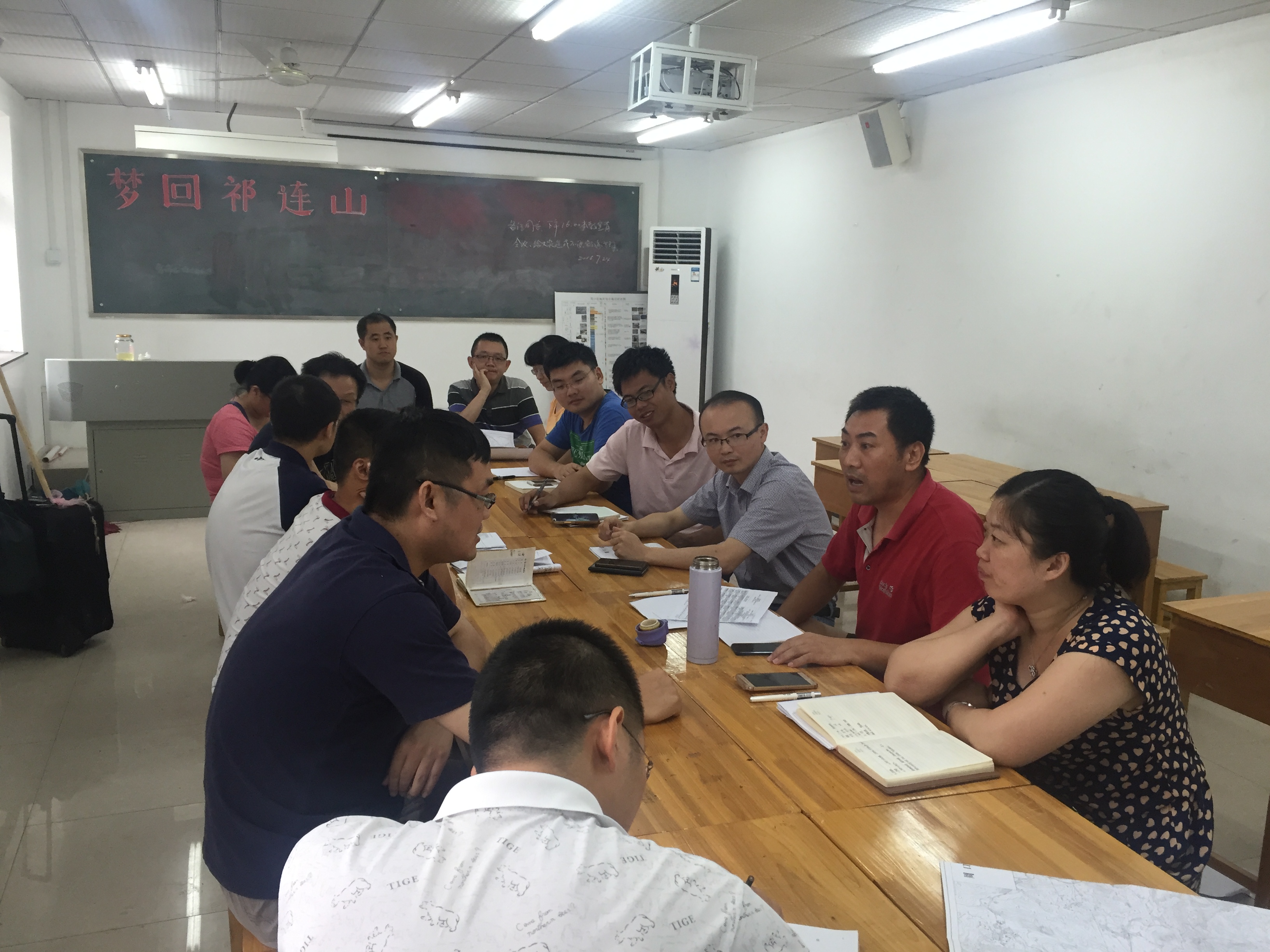 实习队长焦养泉教授主持。会议主要对即将开始的近两月的教学备课与实习主要工作进行了安排。首先,为了保障教学质量和团队生活工作,成立了相关组织机构,包括教学规划组、后勤保障组、信息宣传组、对外联络组和学生工作组等机构,分别推举相关老师负责,并明确了各位老师的带班班级。然后,对教学实习过程中的人身安全、教学路线规划、教学过程质量评估、数字填图以及教学法讨论等问题展开了探讨,形成了一致意见。再次,对教学实习过程中的室内授课内容及人员安排进行了落实。