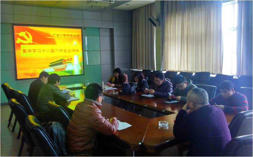 石油工程系党支部于11月24日下午在主楼930学术报告厅开展了本月的主题党日活动。本次活动围绕集中学习十八届六中全会精神展开,同时结合了“两学一做”主题党日学习计划的具体内容。活动由支部书记谢丛姣同志主持。