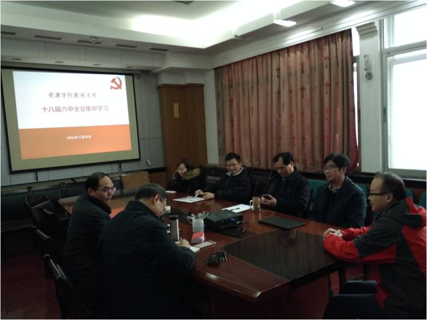 石油地质系党支部在主楼九楼930会议室开展了“学习贯彻十八届六中全会精神”支部主题党日活动。这次支部主题党日活动的主题是学习贯彻十八届六中全会精神、学习《中国共产党问责条例》和《关于新形式下党内政治生活若干准则》、《践行“四讲四有”,做合格党员》专题学习和讨论。