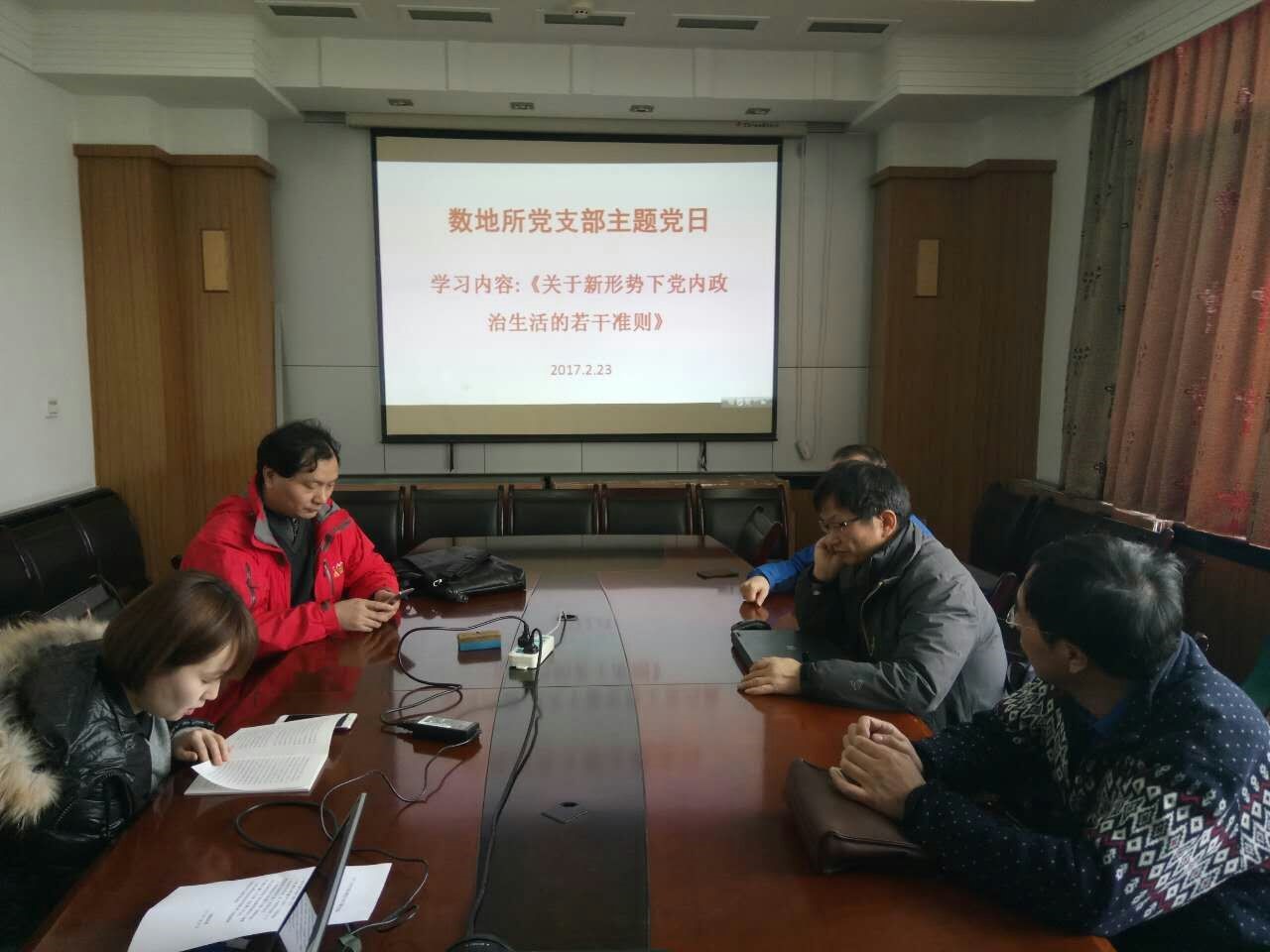 数地所支部以“牢记使命,不忘初心”为重点,就如何以一名党员的身份“撸起袖子加油干”做好教学与科研工作进行讨论,将《准则》的学习与立足本职工作有机的结合在一起,充分发挥政治学习指导实践工作得作用。