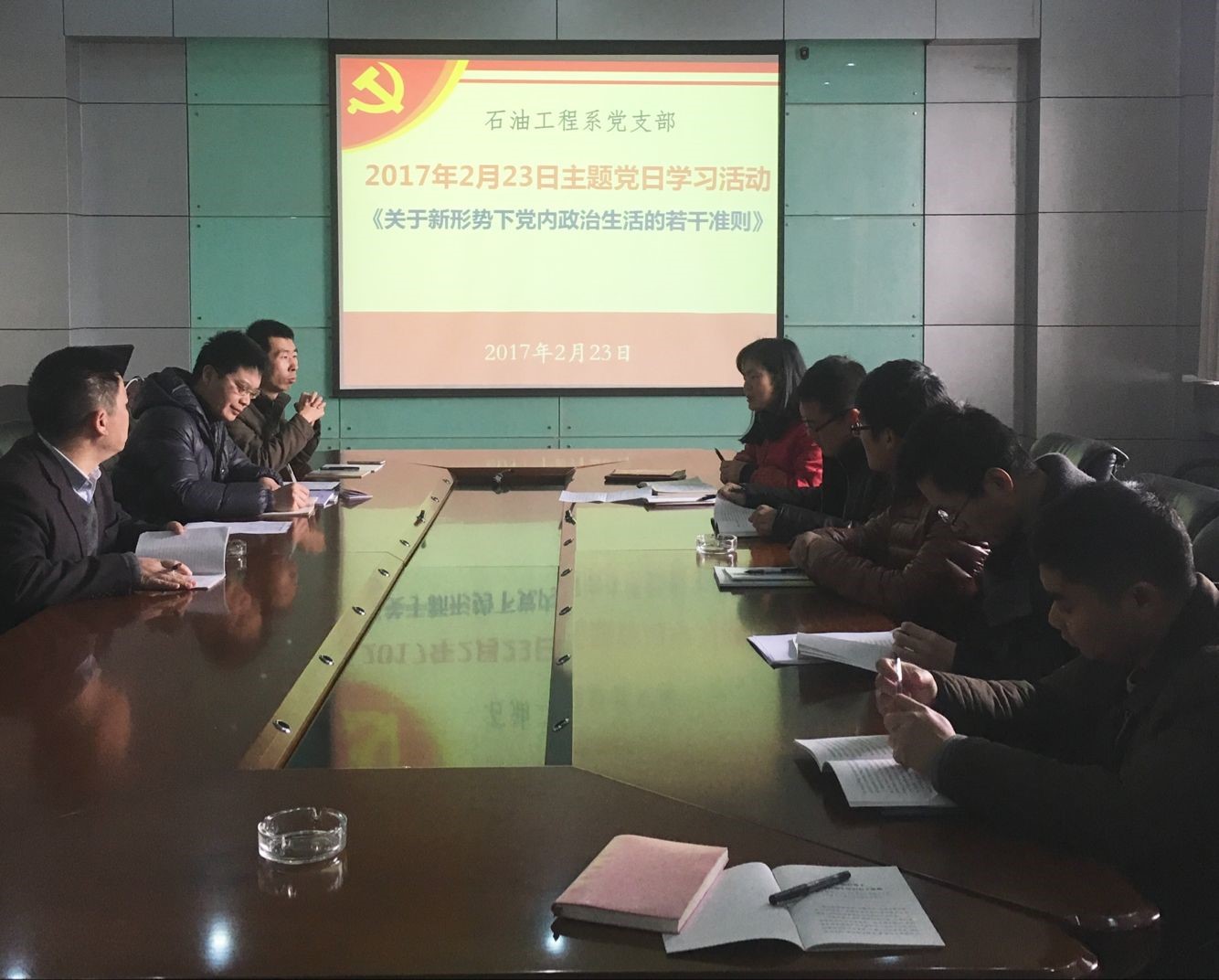 其中,石油地质系支部学习观看微课视频《党内政治生活若干准则的新提法新亮点》,并就新形势下我党面临的“四大挑战”、“四种危险”展开了激烈讨论。