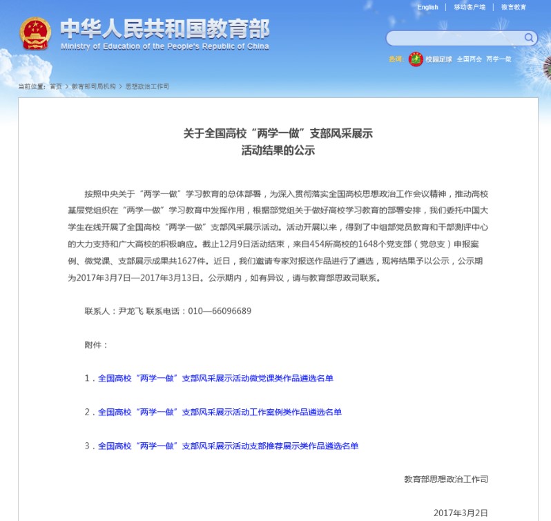两个学生党支部之一入选全国高校“两学一做”支部风采展示活动工作案例类作品遴选名单。林少伟同学在2016年“百生讲坛”中获评省级优秀主讲人。先进支部和党员典型的涌现,进一步推动了学习效果的持续提升。
