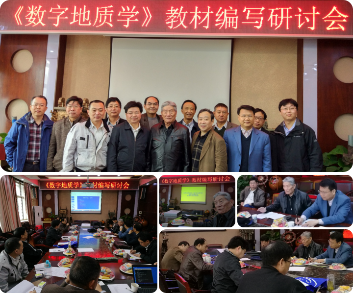 所、中国矿业大学、成都理工大学、中山大学、中南大学、合肥工业大学、桂林理工大学等教育科研单位的十余位专家学者。在研讨会上,赵鹏大院士高屋建瓴地阐释了新编教材的定位与愿景,特别是大数据时代数字地质学的发展机遇及教育使命,对数字地质学做了精辟的论述。各校专家对本校数学地质学科的教学现状及现行教材进行了介绍,对新教材拟定大纲进行了严谨认真、生动活泼、卓有成效的商讨,形成了知识体系清晰、篇章结构合理、教学实用性强、专业适用性宽的教材大纲,并计划在今年年底基本完成初稿。
